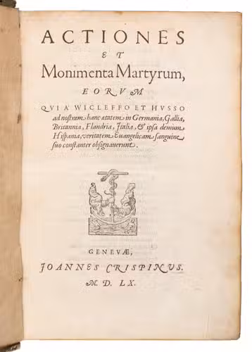 Jean Crespin (ca. 1520-1572) was born in Arras, but studied law in Leuven, where he learned about the Reformation, and became a sympathiser. When this was discovered, he had to give up his career as a lawyer and flee to Geneva, where he set up a printing-press. He published numerous works by Genevan reformers as Calvin, Beza and Bullinger, promoting the Protestant cause. As an author, Crespin's greatest work is unquestionably the present martyrology which considerably contributed to influence the spread of Calvinism.
