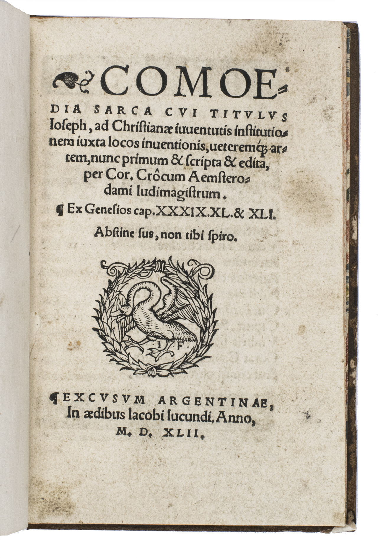 Comoedia sarca[!] cui titulus Joseph, ad Christianae iuventutis institutionem iuxta locos inventionis, veteremque artem, nunc primum & scripta & edita per Cr. Crôcum Aemsterodami ludimagistrum.