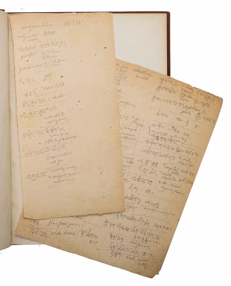 With an owner's inscription dated 7 July 1954 and two leaves written in another hand of someone who was practising Tibetan words and their meaning. In very good condition. A complete copy of the first Tibetan-English grammar book, rarely offered for sale complete. Trübner's catalogue of dictionaries and grammars of the principal languages and dialects of the world (1882), p. 157; Cf. Prem Singh Jina, Famous western explorers to Ladakh (2004), pp. 28-29.
