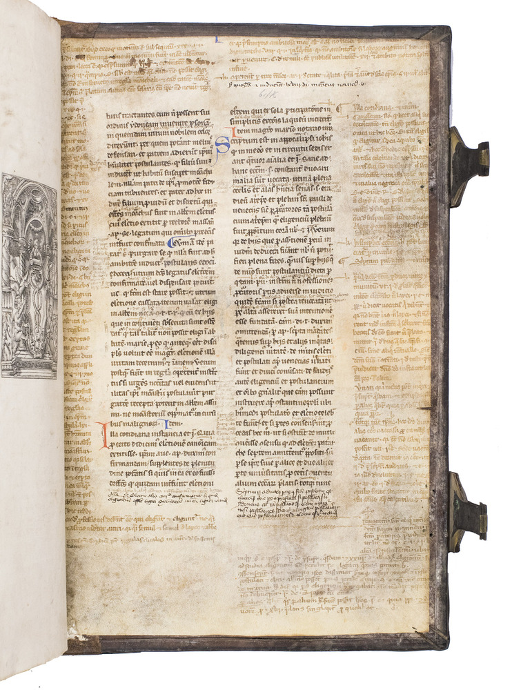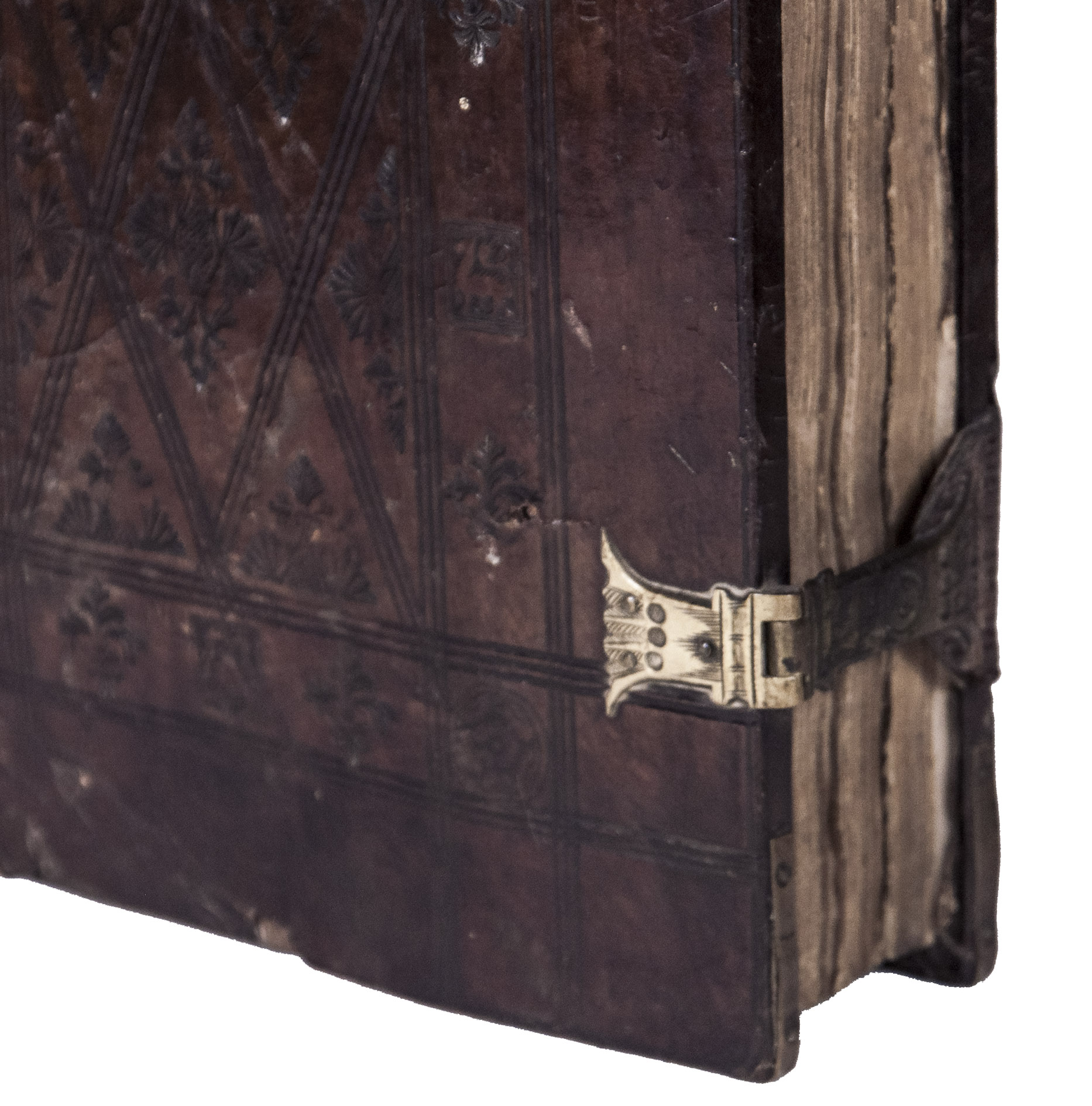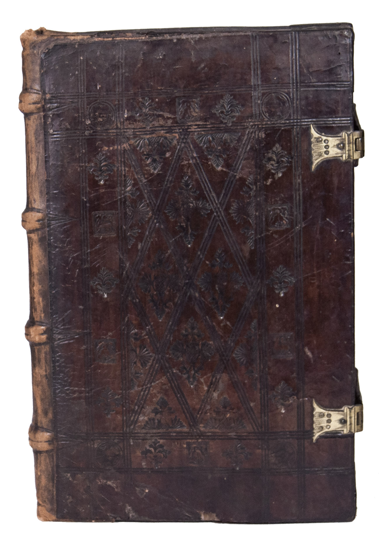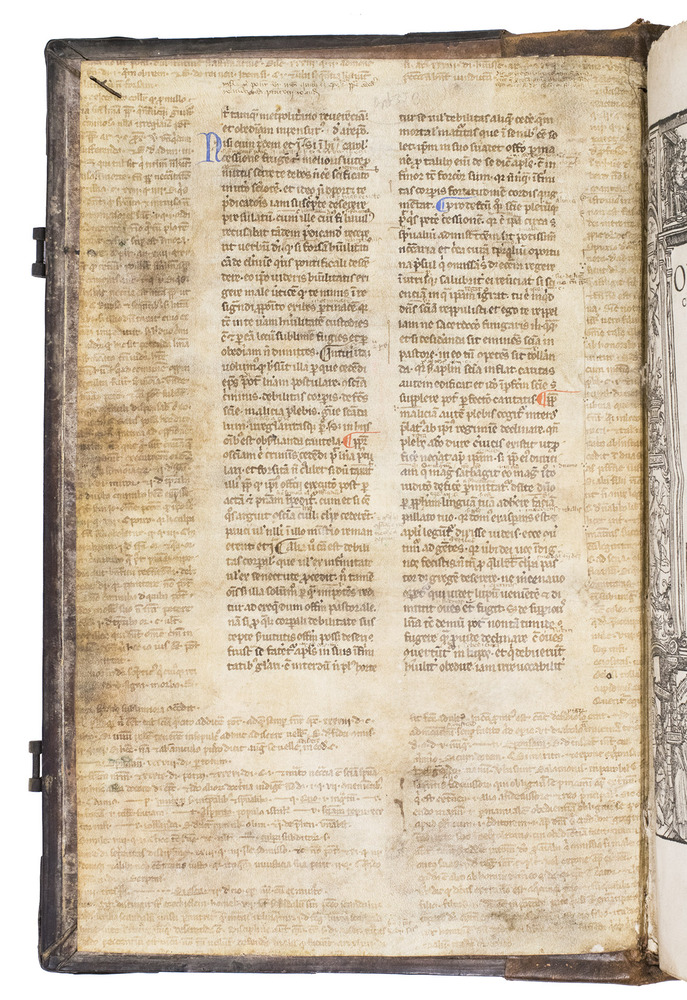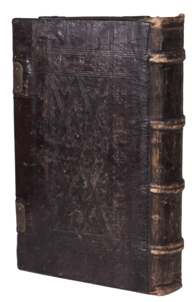 With manuscript waste pastedowns, three stamps of the Roman Catholic Saint Maria-Magdalena church in Zaandam on the title page, occasionally some (near contemporary?) manuscript annotations in the margins and some of the text has been underlined. The work has been re-backed, lacking the backstrip of the original binding, the edges of the leather around both boards is slightly damaged revealing the wooden boards below, the spine is somewhat rubbed. The edges of the first and last few leaves are slightly frayed, some occasional water staining in the fore-edge margin (not affecting the text), some slight staining and dust soiling throughout. Otherwise in good condition. Allen 1000; De Reuck 416; Huizinga VI p. 148; USTC 679667; Vander Haeghen II, 23; VD 16 C 6508; not in Adams; Bezzel; BM STC German.