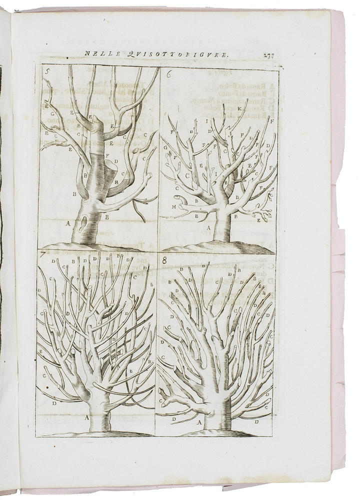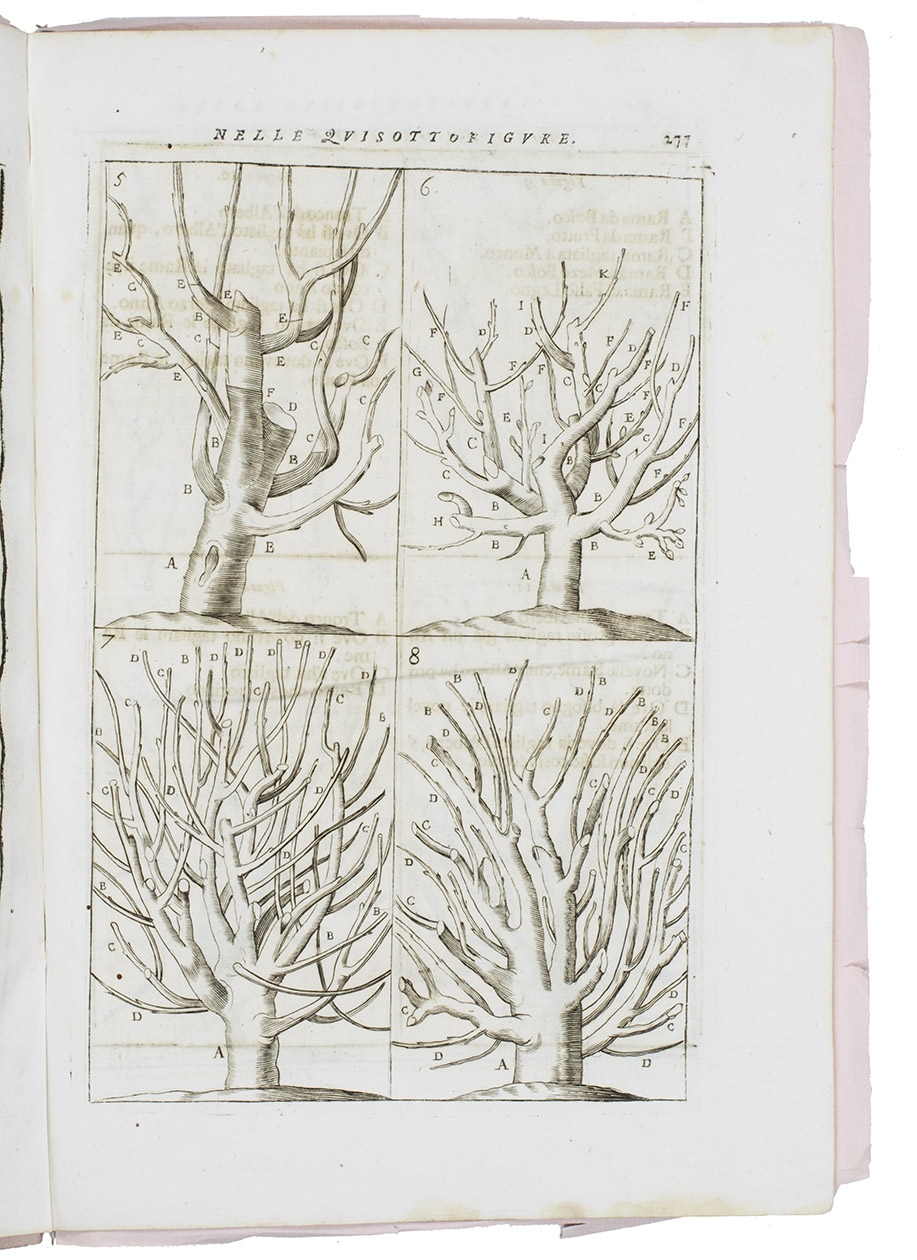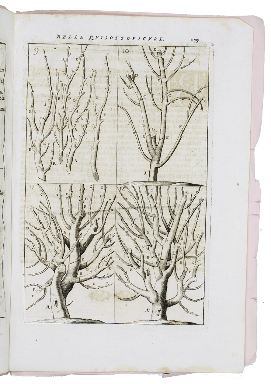 In very good condition and with generous margins, with only some minor water stains at the foot, not approaching the text or illustrations. An extremely rare Italian translation of an early treatise on the grafting of fruit trees. Cf. Arnold Arboretum I, p. 183; Bradley III, p. 171; Hunt 395 & 455; for Dahuron: NBG XII, col. 787.