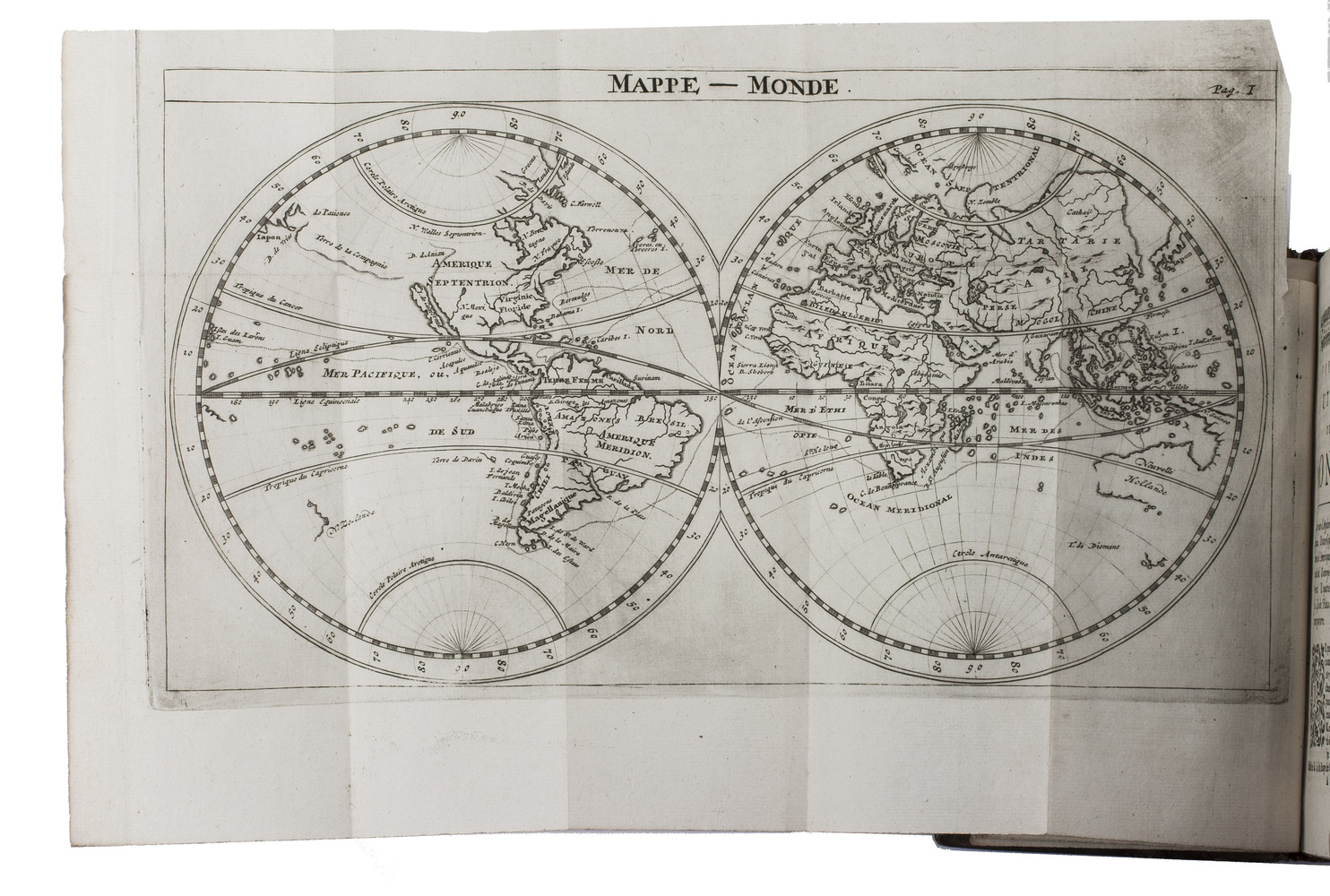 With bookplates. The edge of 2 folding plates slightly tattered (not affecting the image) and a few minor marginal stains, but otherwise in very good condition. The bindings with minor stains and worn at the extremities and hinges but still good. First French edition of an account of an important voyage around the world, including the first successful English landing in Australia. Chadenat 2597; Hill I, pp. 75-78; Howgego D7; JCB IV, 361; Sabin 18381.