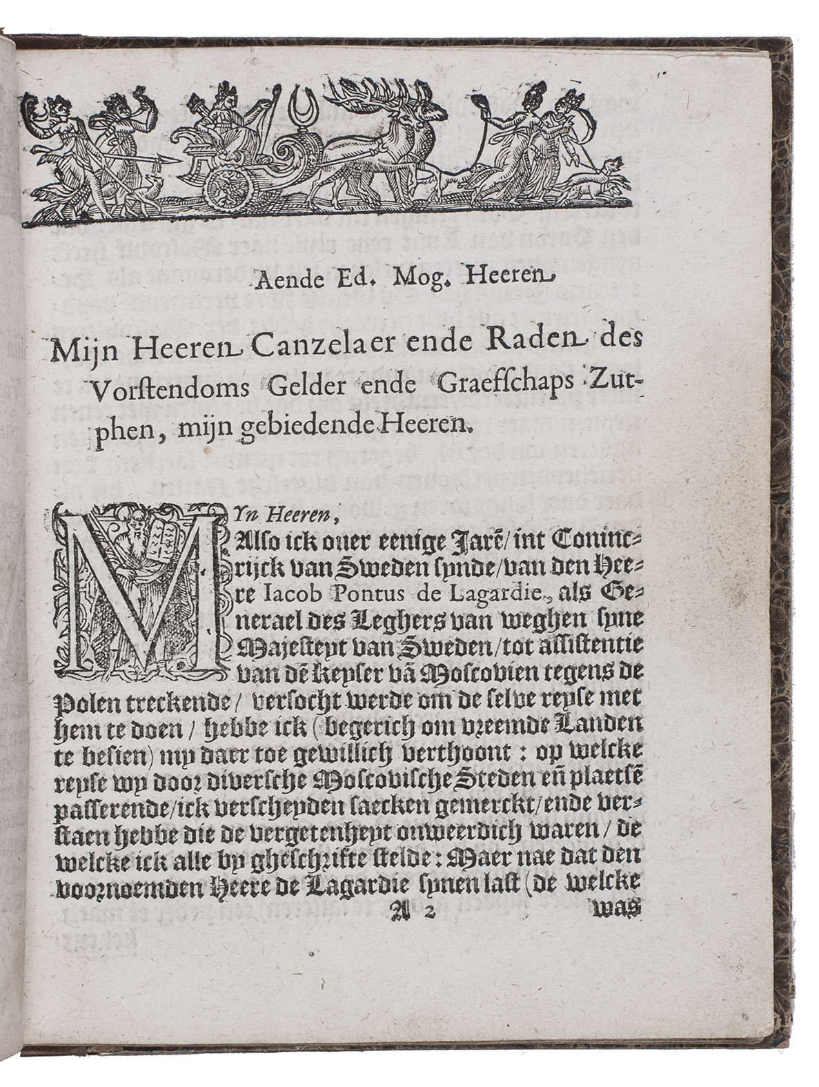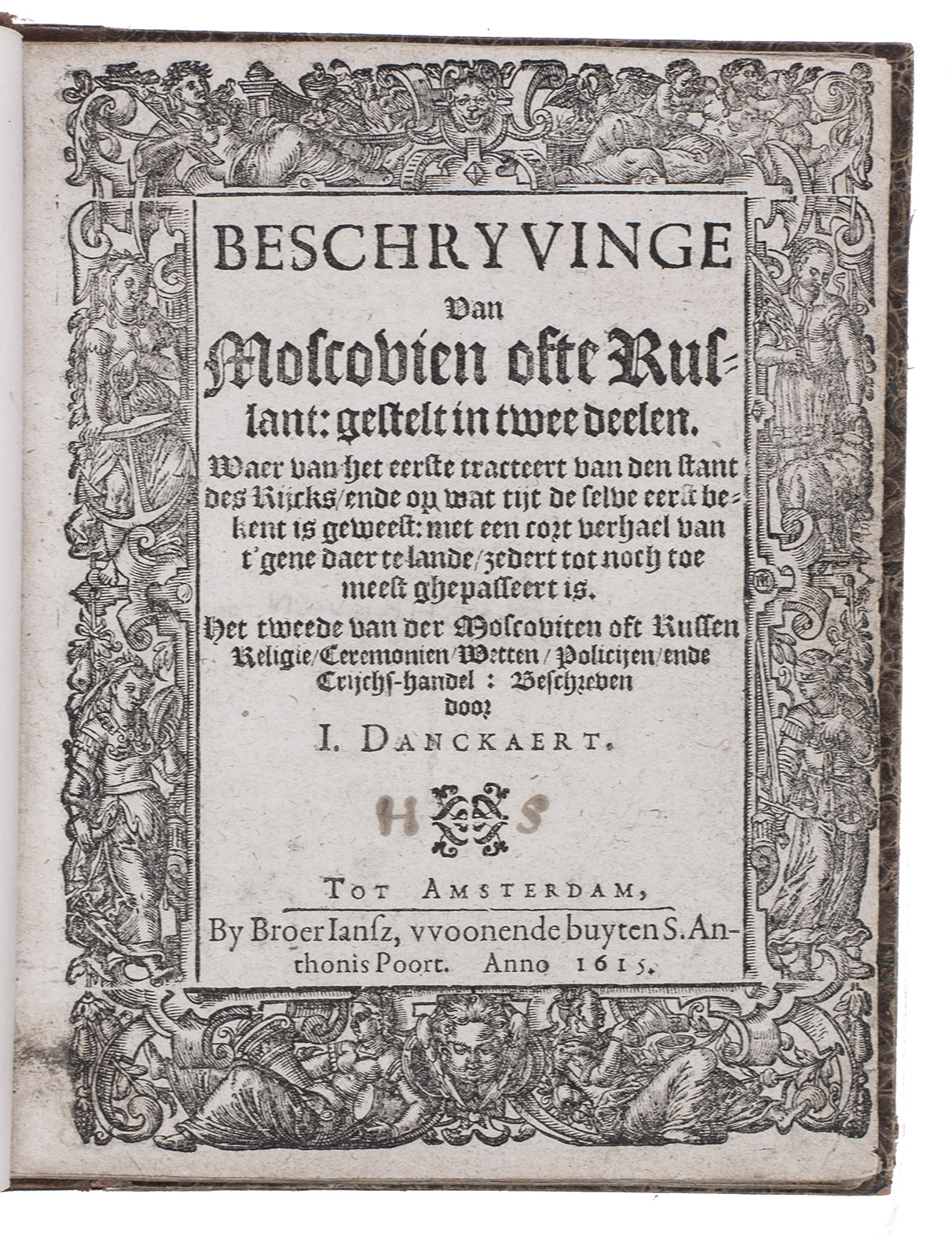First edition of one of the best early Dutch books on Russia by Jan Danckaert. It is divided into two parts, the first part deals with the history of the country, while the second part discusses its religion, customs, laws, costumes, etc., including several chapters on Russian warfare.