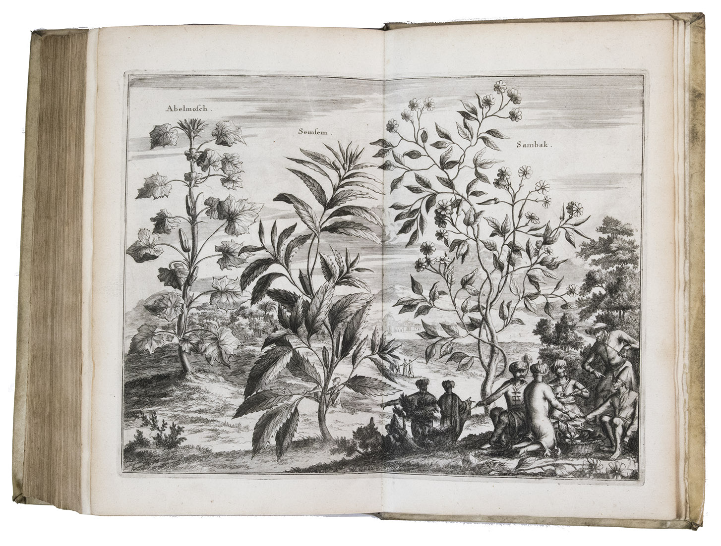 With a damaged library stamp on the title page. The vellum is slightly soiled, the front joint has been restored. A water stain in the upper half of the page in the last third of part 1, page 151 in part 2 was taken from another copy. Otherwise in good condition. Atabey 322; Hage Chahine 1206; Hünersdorff, Coffee, p. 386; Slot, B.J. The Arabs of the Gulf, p. 412; STCN 843116420 (20 copies) Tiele, Bibl. 300; Worldcat 1243774; cf. Blackmer 450 (German ed.).