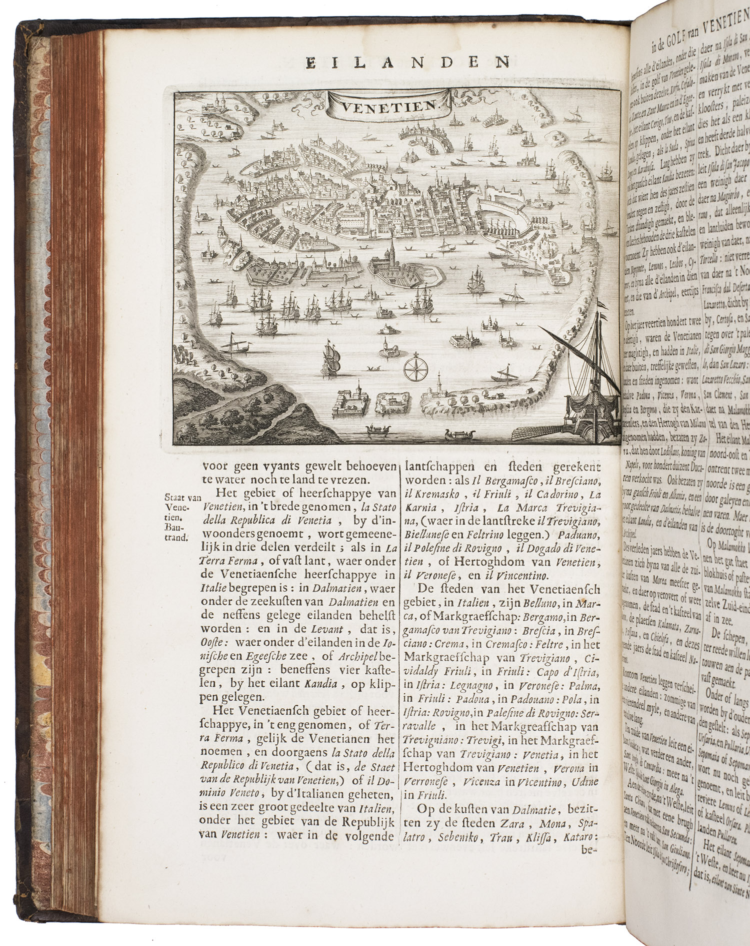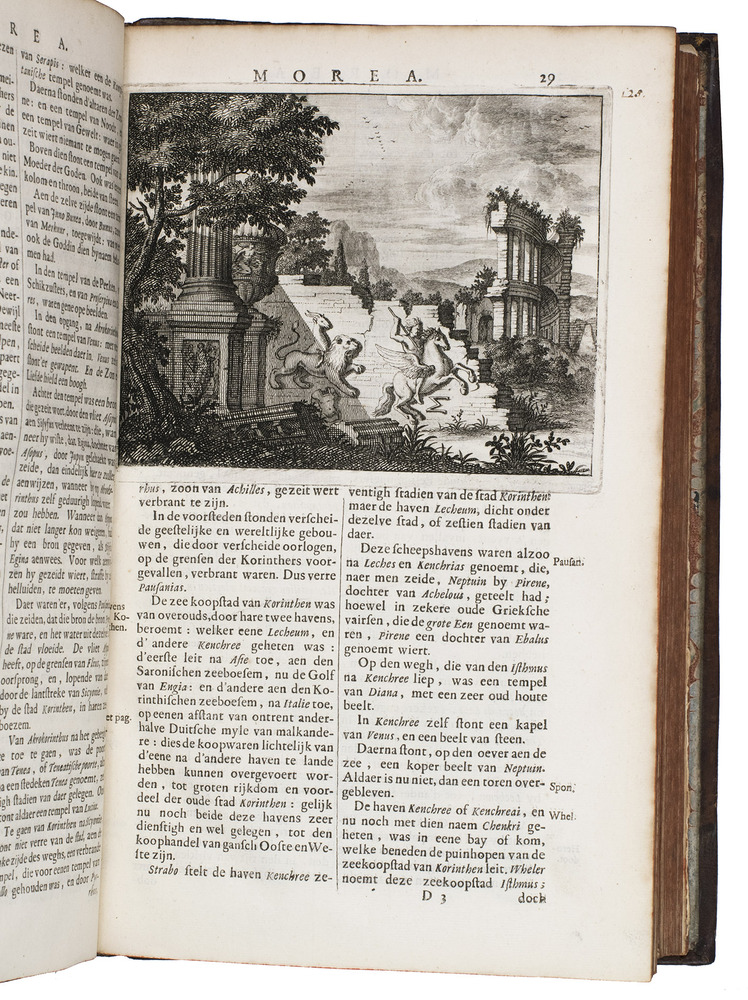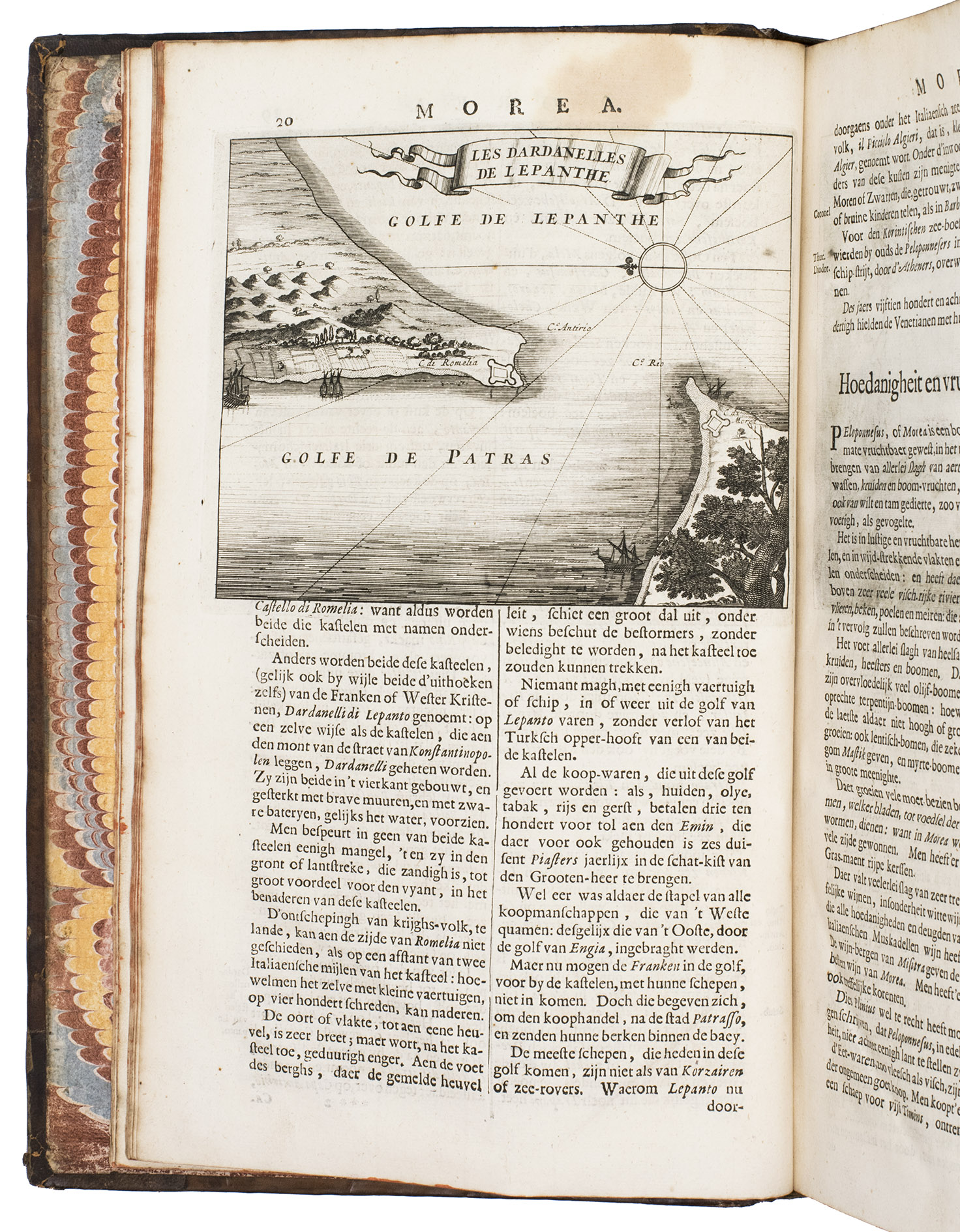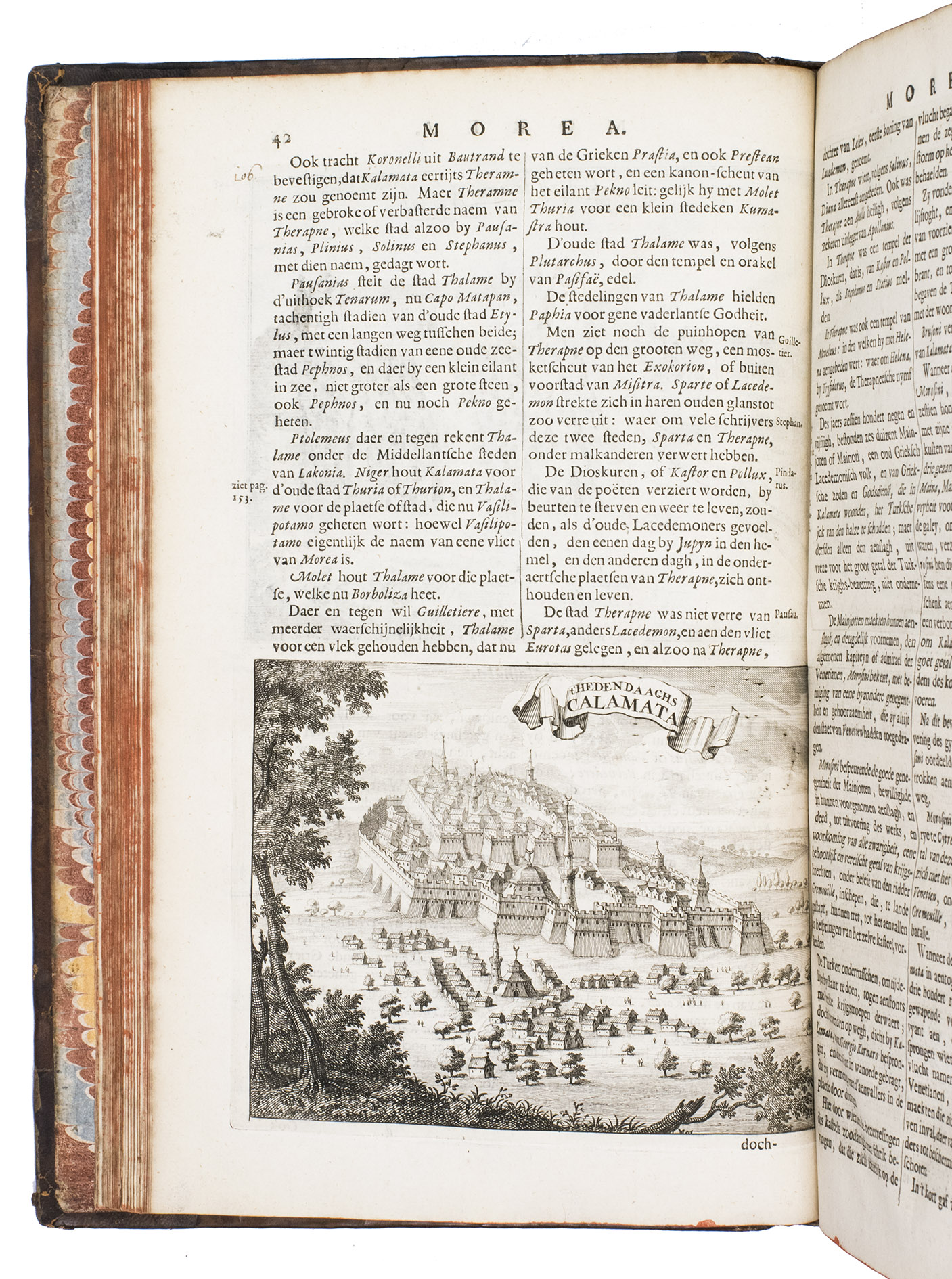 First and only edition of an important and richly illustrated work on the Peloponnese and the Adriatic Sea, with descriptions of Venice, the Dalmatian coast, and several of the major Greek Islands. The work is notable for its fine plates, after Vincenzo Maria Coronelli (1650-1718), Jacob van Meurs (ca. 1620-1679), Joan Blaeu (ca. 1598-1673) and others. It was probably published in response to the Morean War (1684-1699), the sixth conflict between the Republic of Venice and the Ottoman Empire, in which Venice took control of the Peloponnese peninsula (also known as Morea). The maps show various locations from this battle.