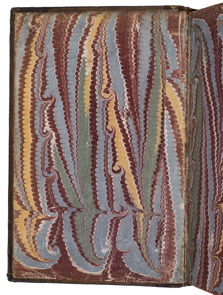 The present copy bears the royal arms of the United Kingdom on the front board, with the text "Military Depot" in a banner above. It must have been part of the collection of a British military regiment, but it is unknown which one. The work may have been bought by the British army as a source on the region.