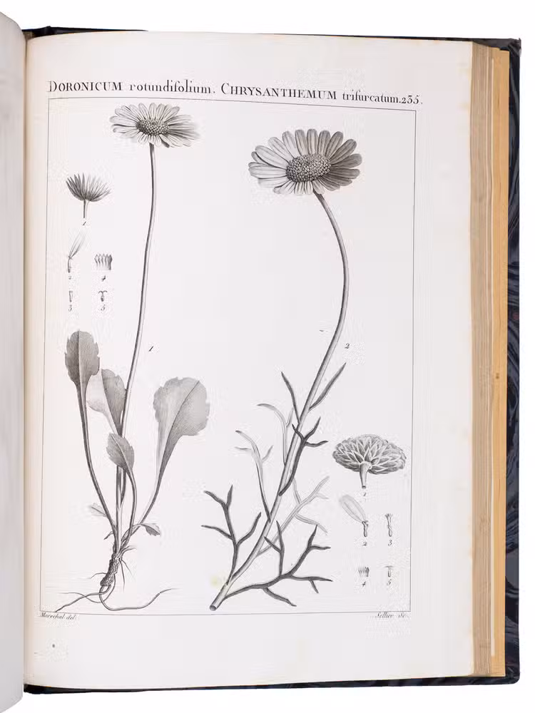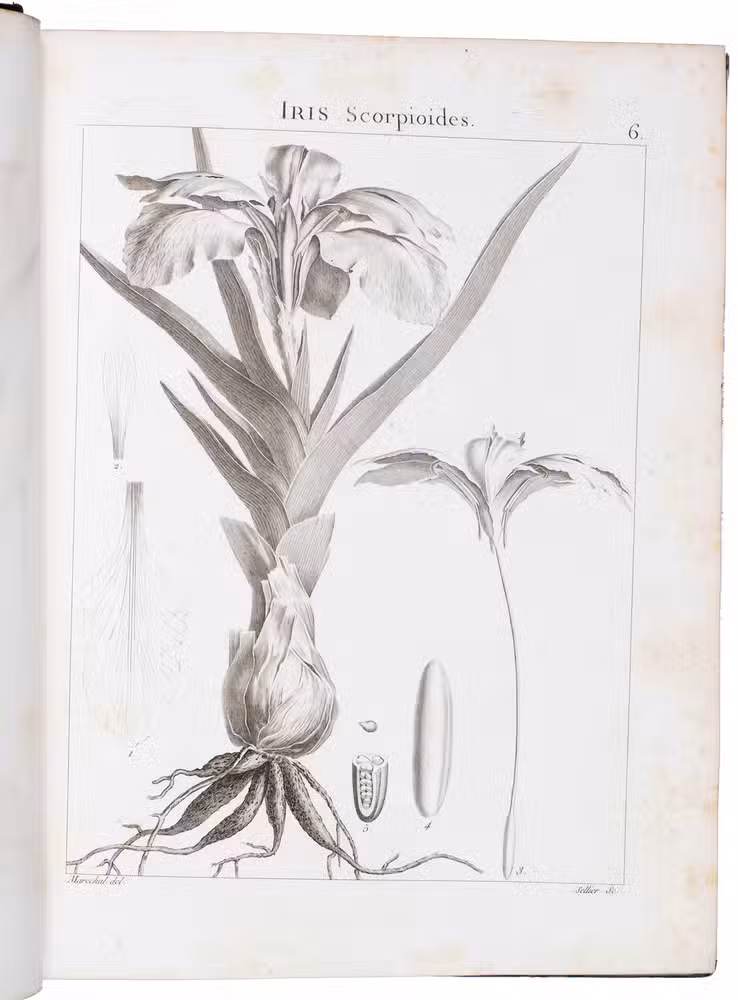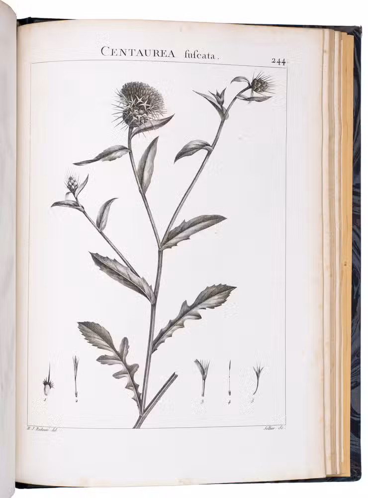 The engravings in Flora Atlantica are all signed. They were all engraved by François Noël Sellier (1737-?) and designed by various artists, including painter and botanist Pierre-Joseph Redouté (1759-1840) and his brother Henry-Joseph Redouté (1766-1852).