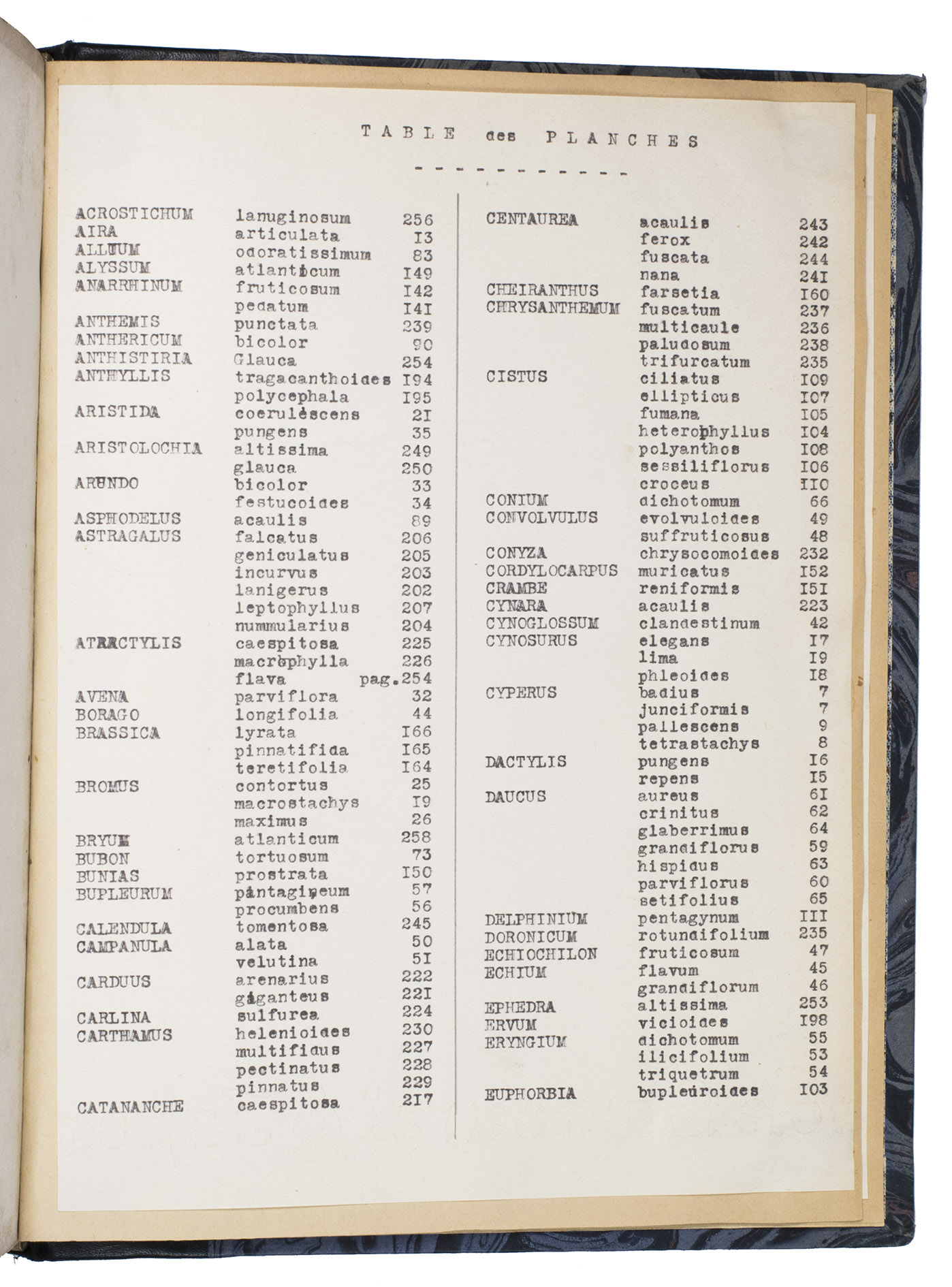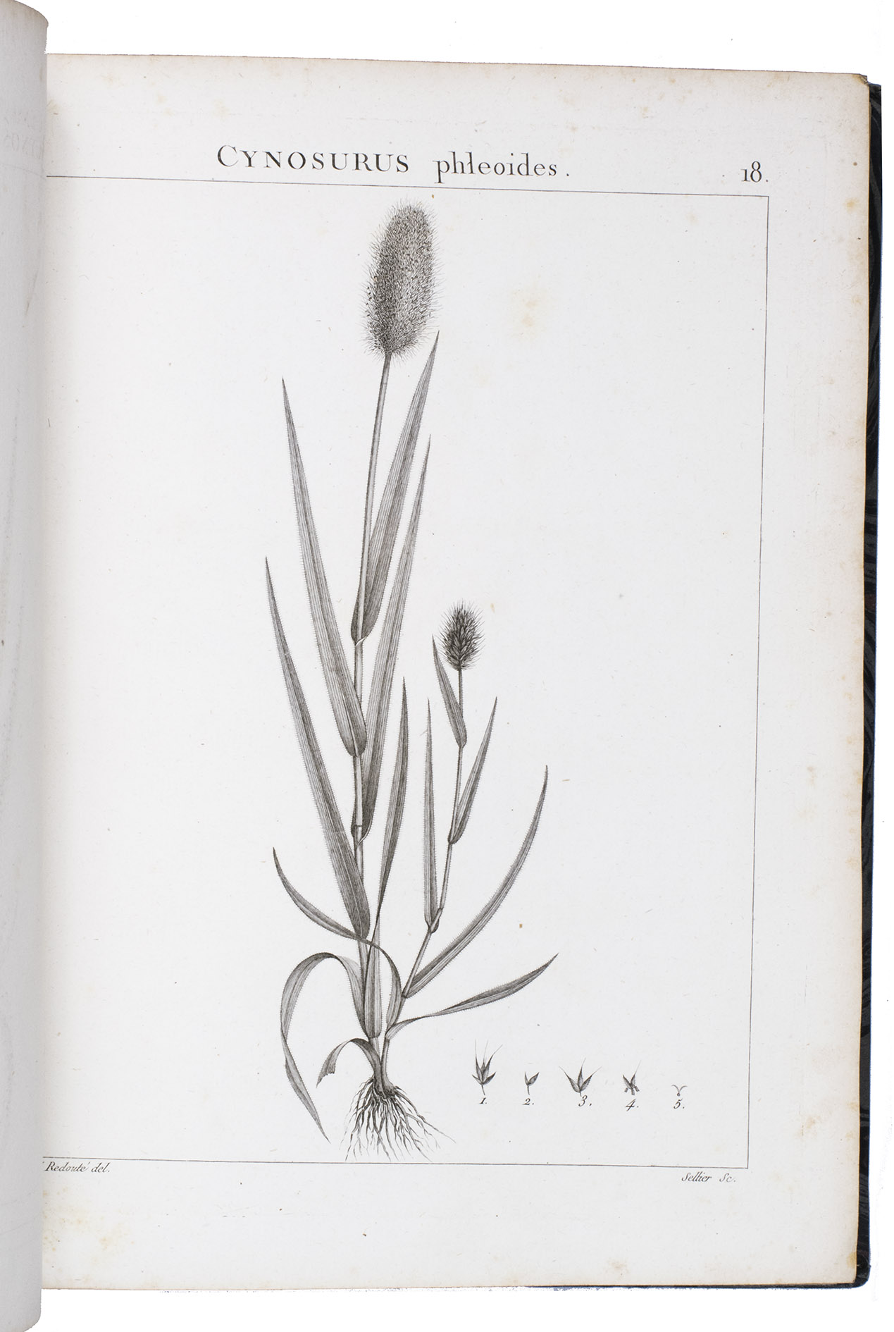 With a white, round label with a number on the front pastedown of both volumes ("288A" in vol. 1 and "288B" in vol. 2), an ownership annotation of the previous owner, botanist Bernard de Retz (1910-2004) in pencil on the free flyleaf of the first volume ("B. de Retz") and 3 printed leaves with a table of contens for the plates mounted on the back flyleaves of the second volume. The edges and corners of the boards are somewhat scuffed and the leather on the spine is somewhat scratched. Some of the leaves are lightly foxed. Otherwise in very good condition. Dunthorne 92; Nissen, BBI 475; Pritzel 2176; Sitwell, S., Great flower books, p. 89; Stafleu & Cowan 1392; Stearn, W., Dates of publication of some floras of North-west Africa. In: Journal of the society for the bibliography of natural history, 1, 1938, pp. 147-148.