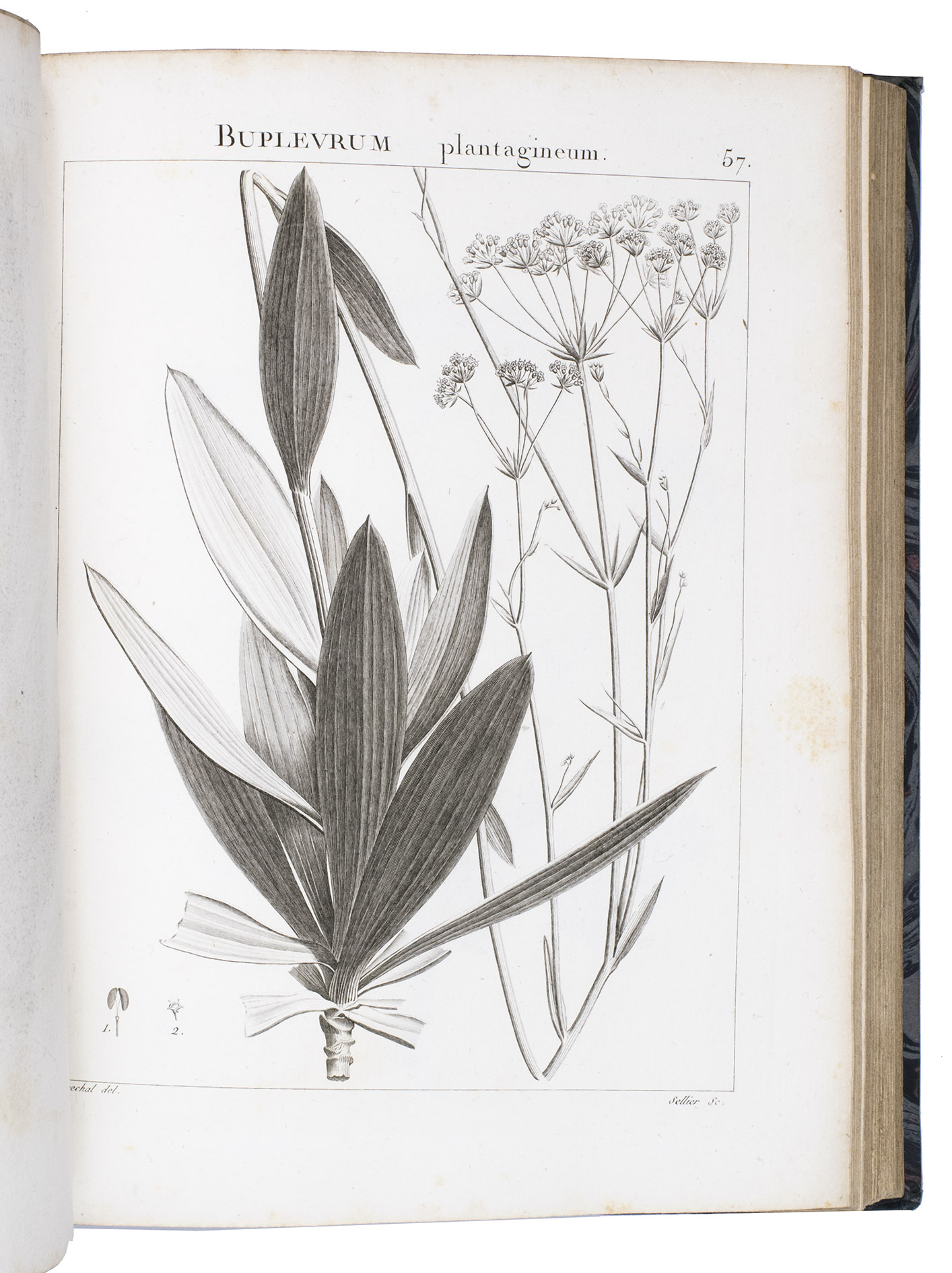 Paris, L. G. Desgranges, Imprimerie Panckoucke, 1798-1799 (anno sexto). 3 parts in 2 volumes. 4to. With "261" [=263] numbered, full-page, engraved plates. Late 19th-century black morocco. [6], XX, 444; 458 pp.
