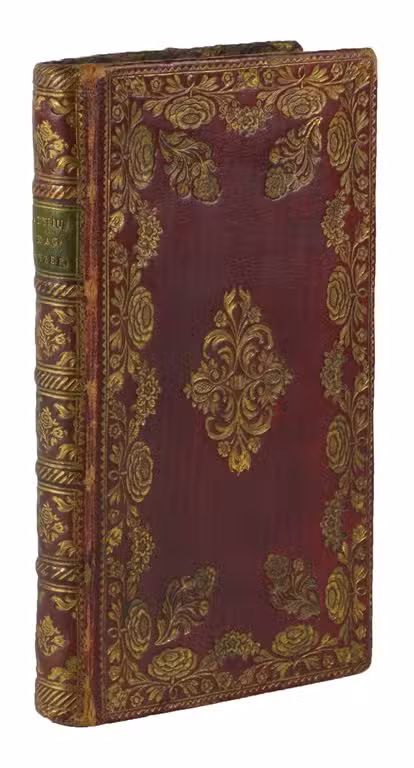 From the collection of Jacobus Koning (1770-1832), scholar and devotee of Dutch history (especially the history of books and printing), literature and art. With a small tear repaired in the frontispiece, but otherwise in fine condition. The binding is worn at the hinges and corners, but still very good, with the tooling clear and well preserved. A beautiful and beautifully bound manuscript, especially interesting for its record of Dutch artists. J. de Vries et al., Cat. der letterkundige nalatenschap van wijlen Jacobus Konig, vol. 1 (manuscripts), 29 April-3 May 1833, lot 19; cf. for the binding: Storm van Leeuwen, Dutch Decorated Bookbinding in the Eighteenth Century, vol. I, pp. 671-679.