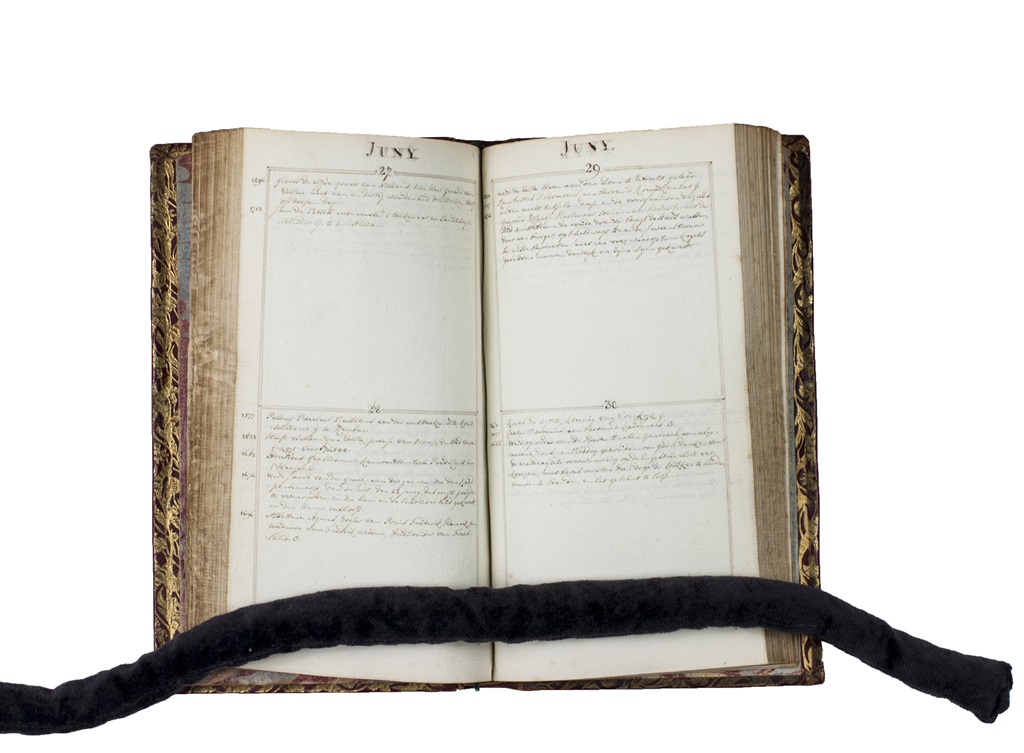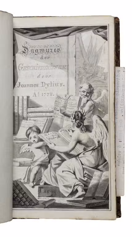 A beautifully produced manuscript, probably prepared for publication but apparently never published, listing more than a thousand events of historical importance (including the birth and death dates of important people) with a special emphasis on Dutch artists. The main text forms a calendar with two days per page, listing events for the relevant day from many different years. Although it includes events going back to 17 CE, most entries date after the Union of Utrecht (1579) gave birth to the Dutch Republic and many give the birth or death dates of Dutch artists. The book was compiled by the Amsterdam apothecary Joannes Dylius (ca. 1746/47-1807) and has its origins in a similar publication by the famous historian of the Dutch Revolt, Geeraert Brandt, Daghwyzer der geschiedenissen (1689), and a new version compiled by Govert Klinkhamer, Dagwyzer der geschiedenissen (1775).