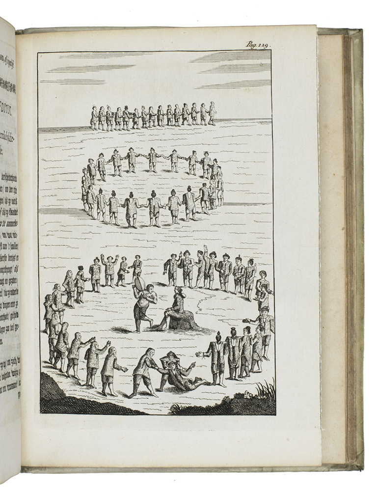 The present Dutch edition was translated from the second Danish edition, published in 1741 at Copenhagen and the present dedication to the Danish crown prince is still dated 1741. The first Danish edition, published without the author's permission, was much less extensive, so the present Dutch edition includes the extensive new material from the second edition, in which Egede added an "extensive study of the natural history of Greenland, together with descriptions of the life and customs of the Greenlanders, their religion, knowledge of the stars, and a brief vocabulary of their language" (Howgego). He also expanded the part on the geography and earlier history of Greenland. Another great improvement in the second edition is that Egede provided it with a folding map of the country and with 11 engraved plates, vividly illustrating his account. Egede's work on Greenland proved very popular and was translated in the following years not only into Dutch, but also into German, English and French.