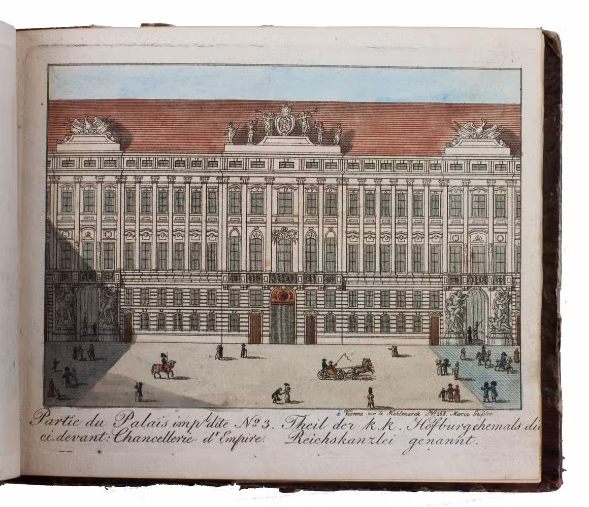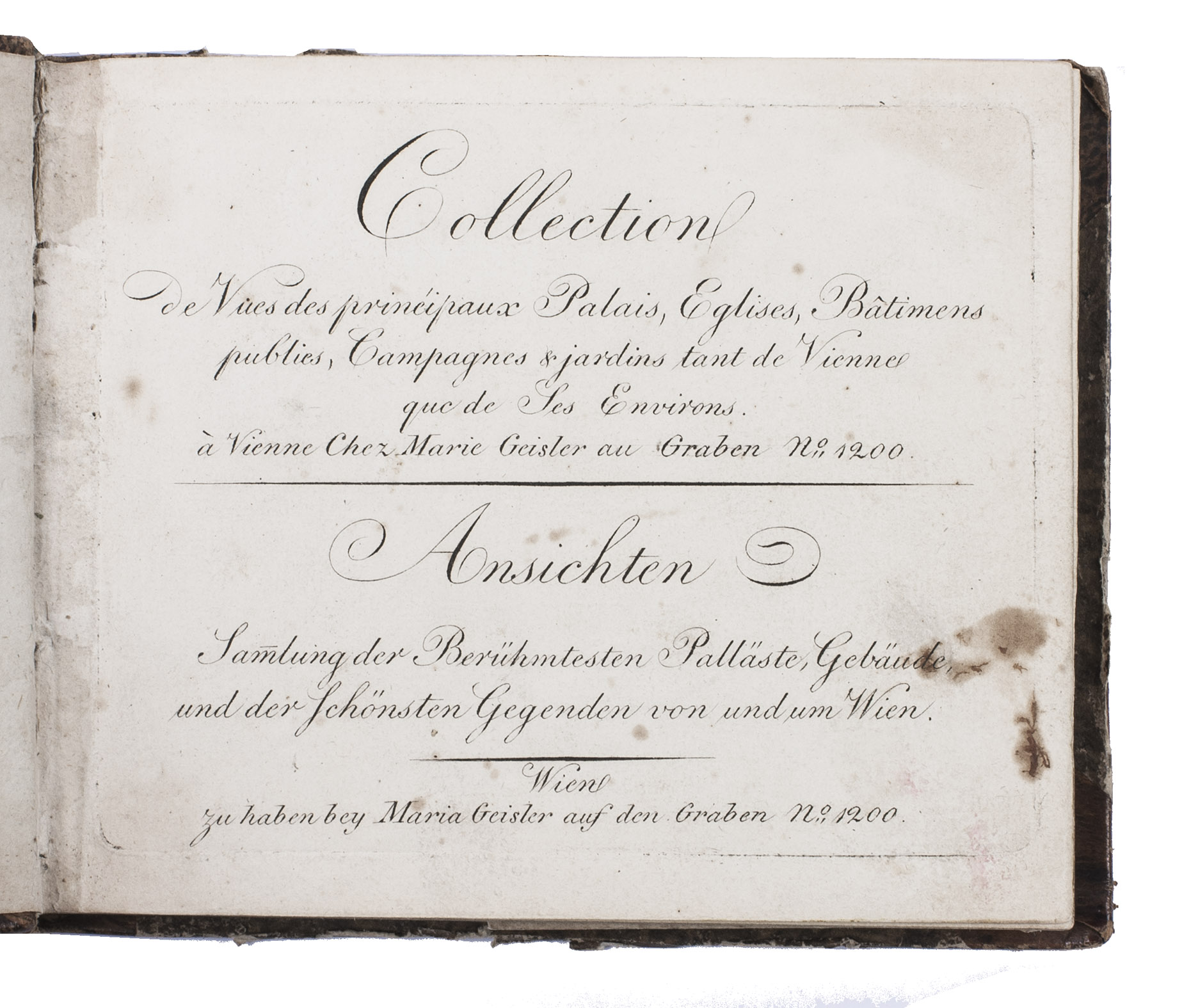 Collection de vues des prinéipaux [recté principaux] palais, eglises, bâtimens publies, campagnes & jardins tant de Vienne que de ses environs. | Ansichten Sam[m]lung der berühmtesten Palläste, Gebäude, und der schönsten Gegenden von und um Wien.