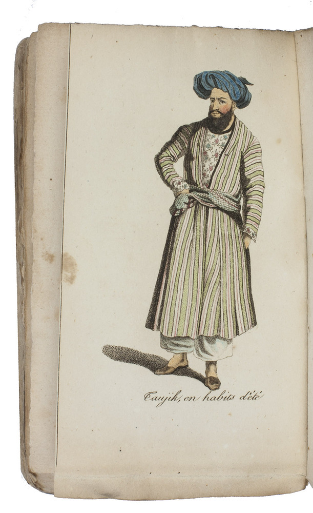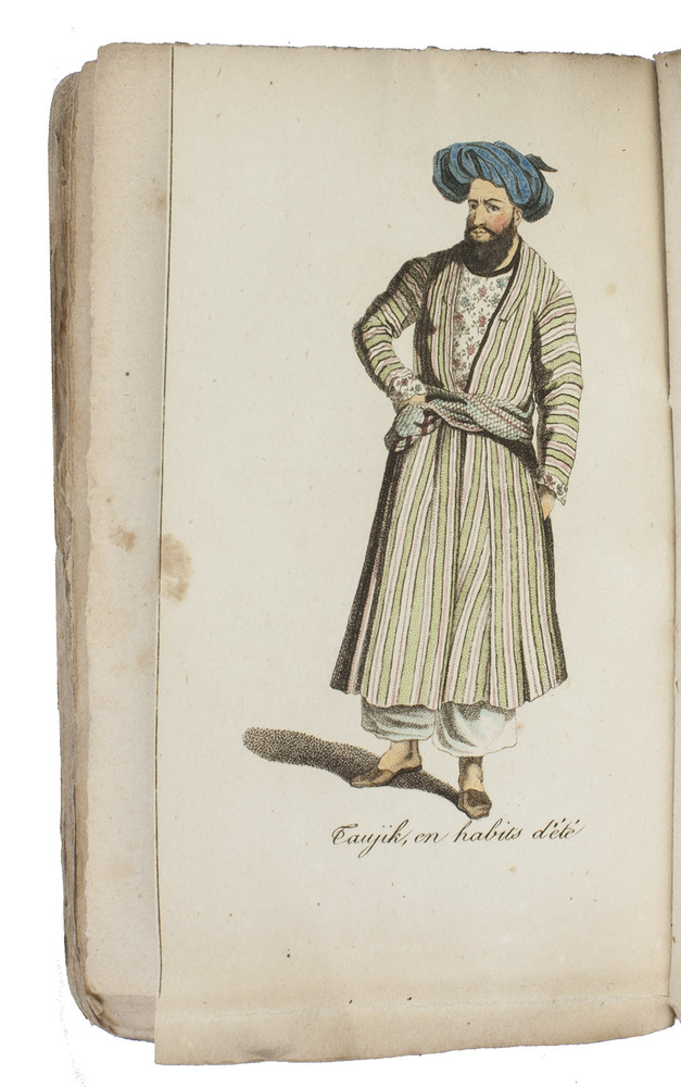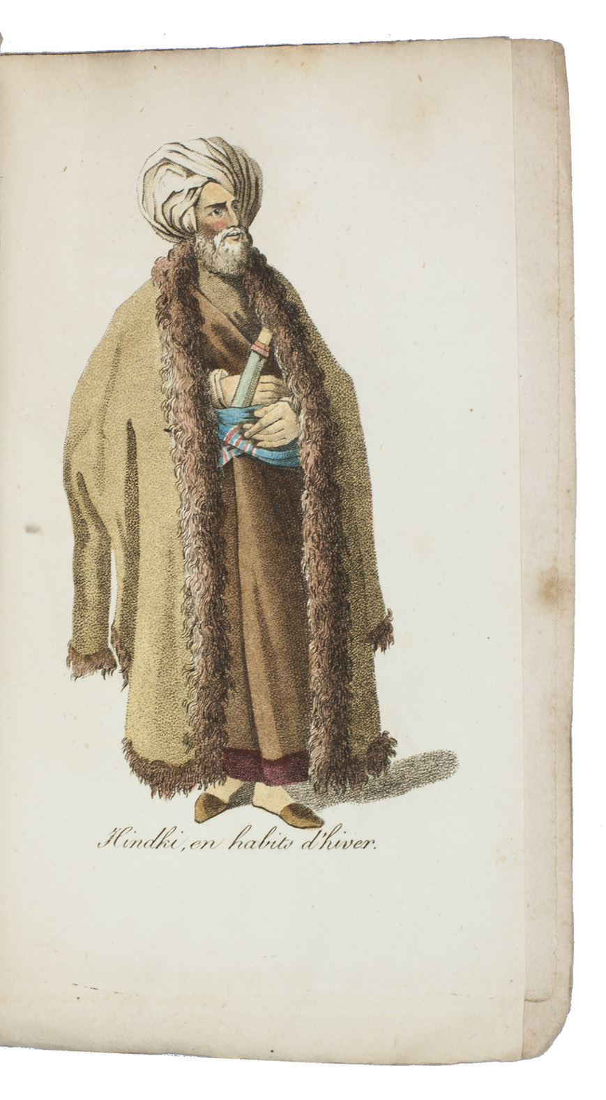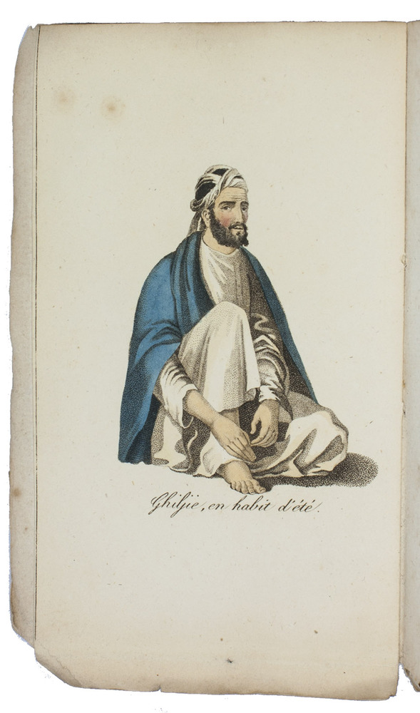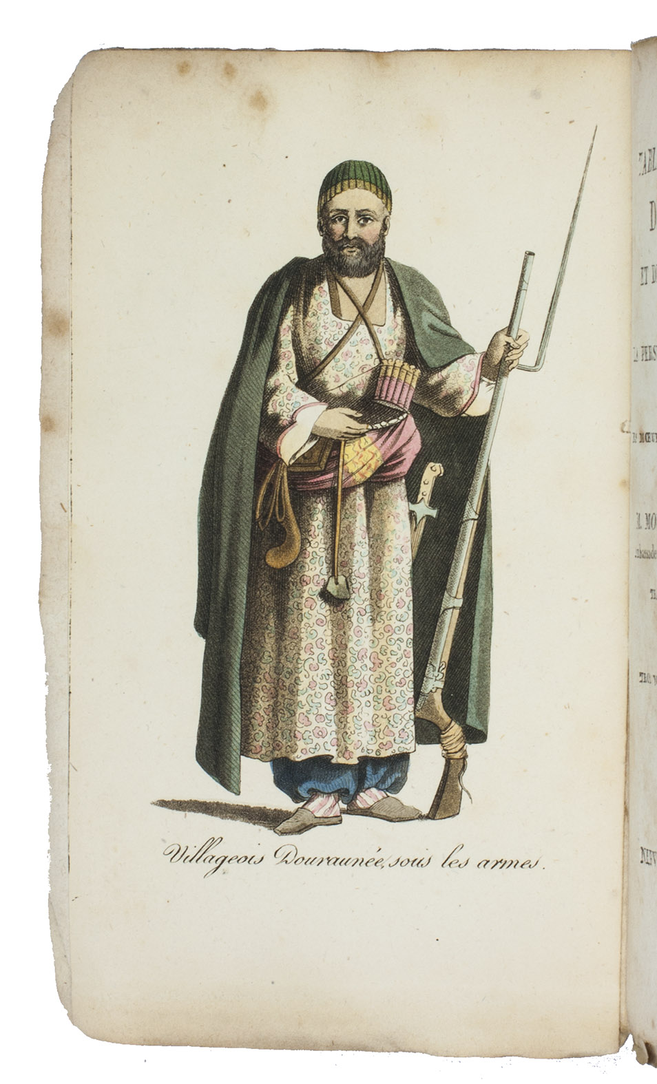 First edition of the French translation of one of the first exhaustive works on the kingdom of Kabul, now known as Afghanistan, and its dependencies in Persia, Tartary and India. First published in English in 1815, it was written by a British official, Mountstuart Elphinstone (1779-1859). Elphinstone was sent to the kingdom of Kabul by the rulers of British India in 1808, to discuss with the Shah the possibilities of a mutual defence against Napoleonic France. Elphinstone, as a consequence, was the first Englishman to visit Peshawar, the traditional winter residence of the rulers of Kabul, which was also the terminus of all trade routes from east to west. The meeting was concluded by a treaty of friendship (7 June 1809), the Shah promising to oppose the passage of foreign troops through his country. Before this could be ratified, however, the Shah was driven off the throne by his brother.
