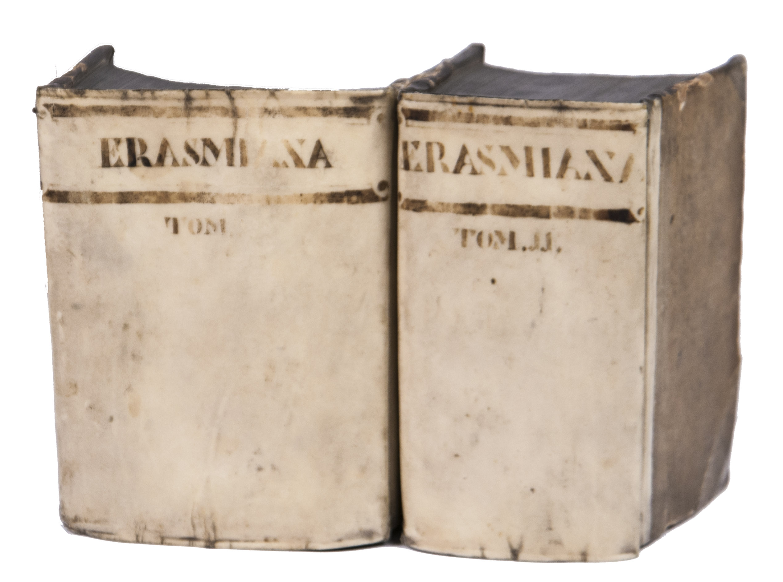 Contemporary half vellum, paper sides, with "Erasmiana tom. I [or II]" in manuscript on the spine, blue edges.