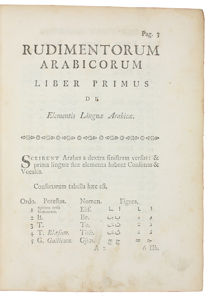 Rudimenta linguae arabicae. Florilegium sententiarum arabicarum ut et clavim dialectorum ac praesertim arabicae adjecit Alb. Schultens. Editio altera, aucta indicibus.