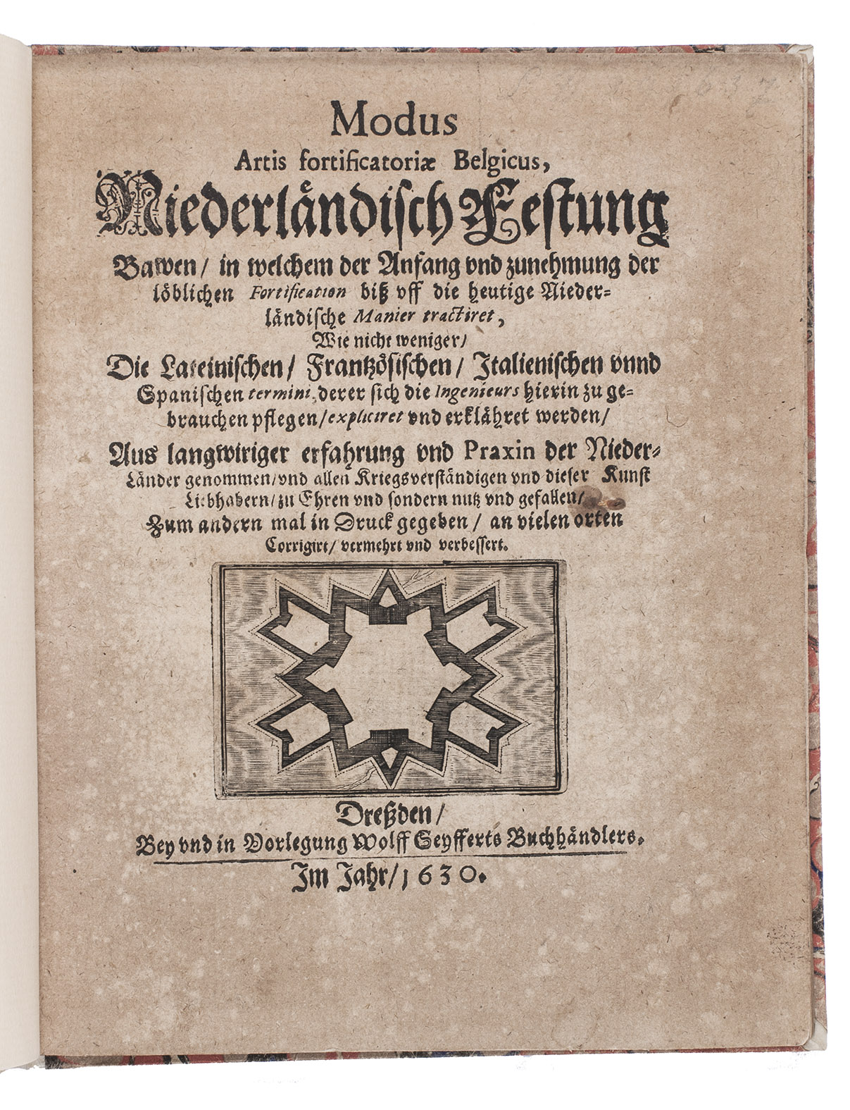 Modus artis fortificatoriae Belgicus, Niederländisch Festung bawen, ..., zum andern mal in Druck gegeben, an vielen Orten corrigirt, vermehrt und verbessert.