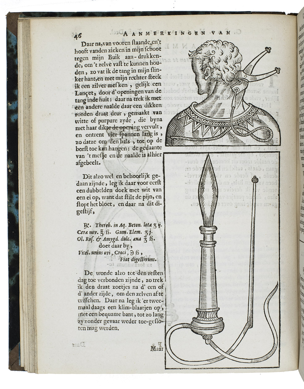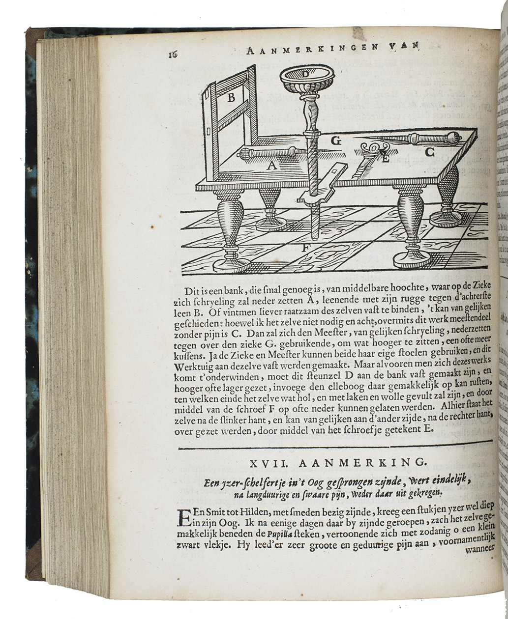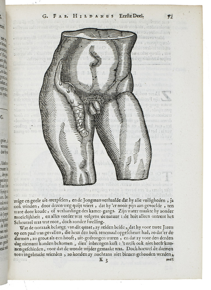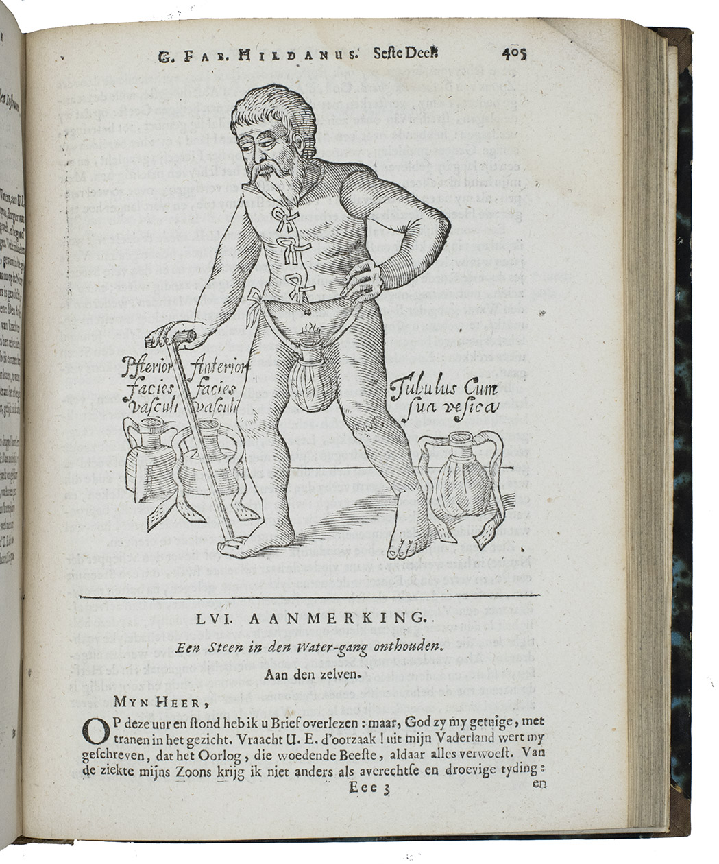 Rare Dutch edition of Wilhelm Fabry von Hilden's famous Centuriae or collections of surgical case reports, enlarged with three additional cases. The collections, 600 in total, were assembled from Fabry's detailed notes of his own cases, and from information supplied by the physicians and surgeons with whom Fabry corresponded.