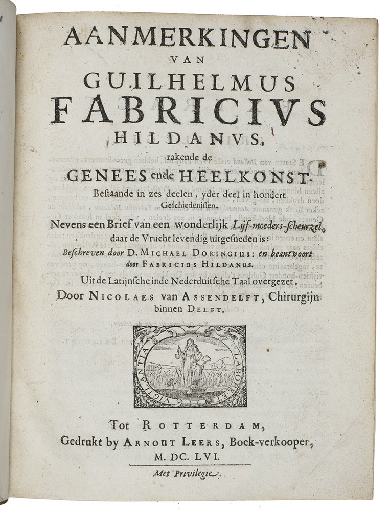 Aanmerkingen ... rakende de genees ende heelkonst. Bestaande in zes deelen, yder deel in hondert geschiedenissen. Nevens een brief van een wonderlijk Lijf-moeders-scheurzel, daar de vrucht levendig uitgesneden is: beschreven door Michael Doringius: en beantwoort door Fabricius Hildanus.