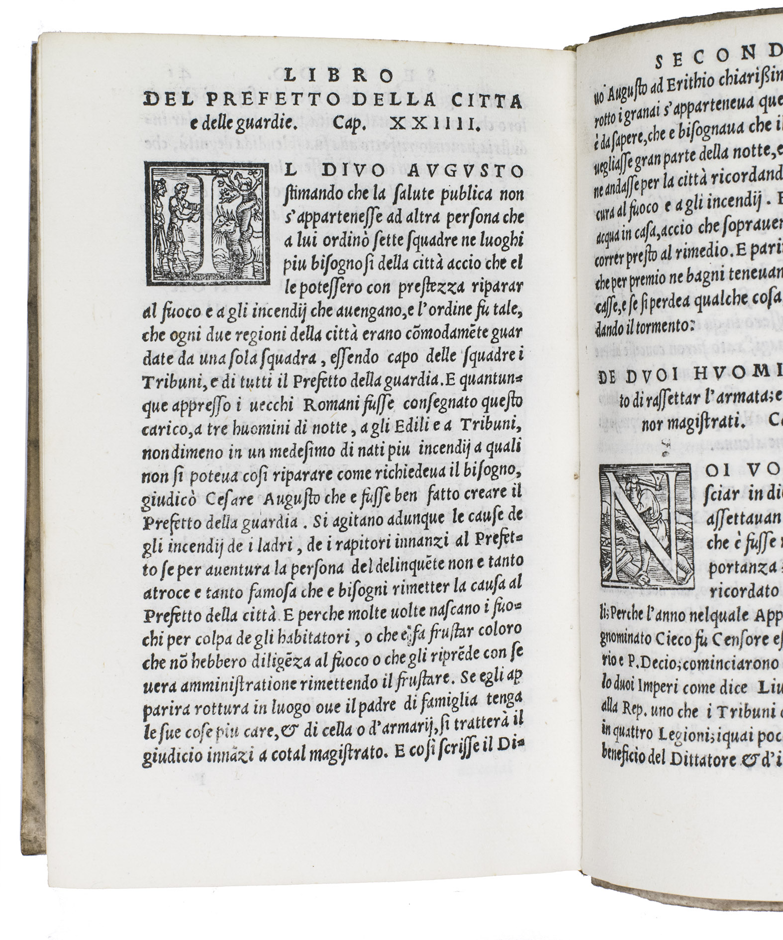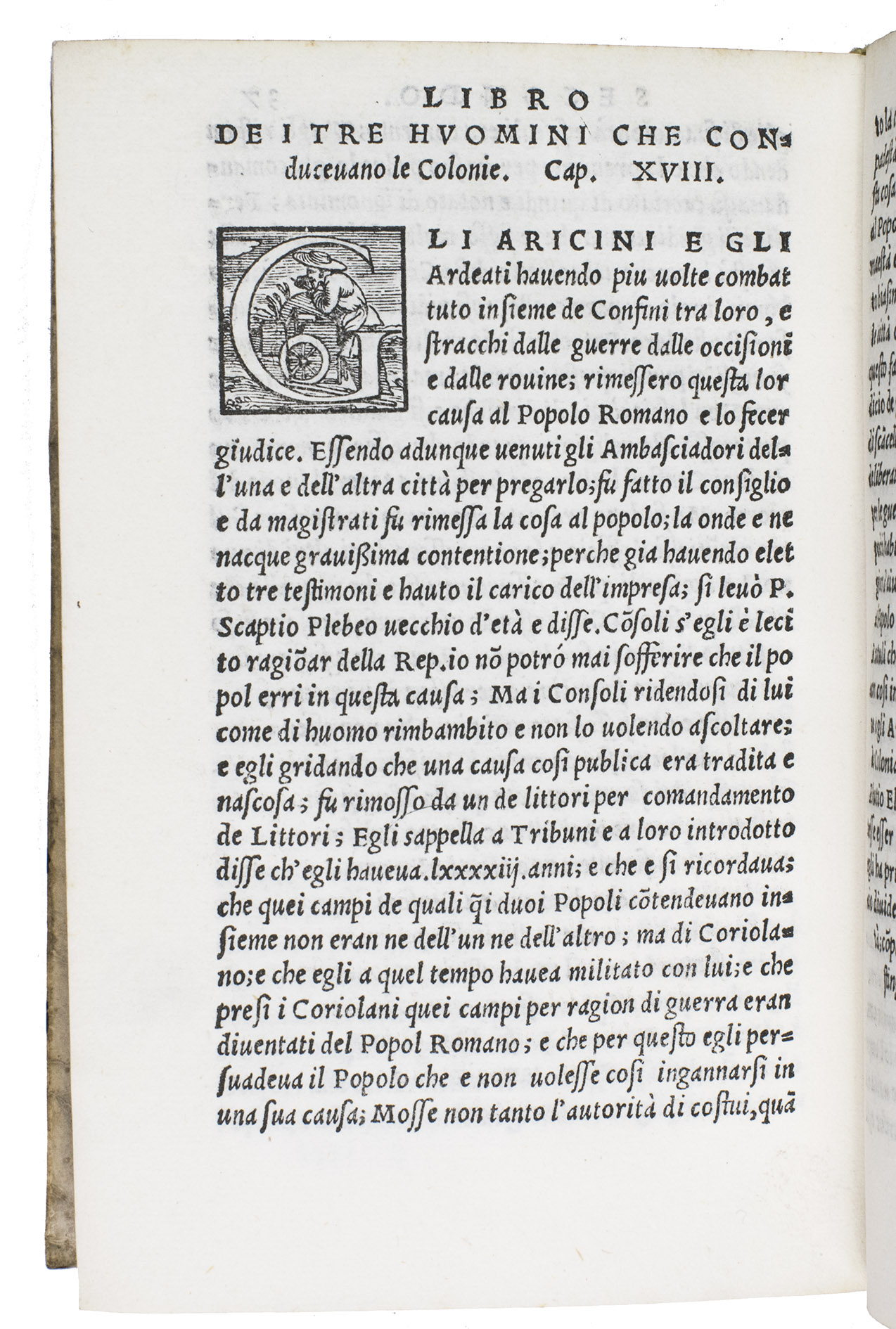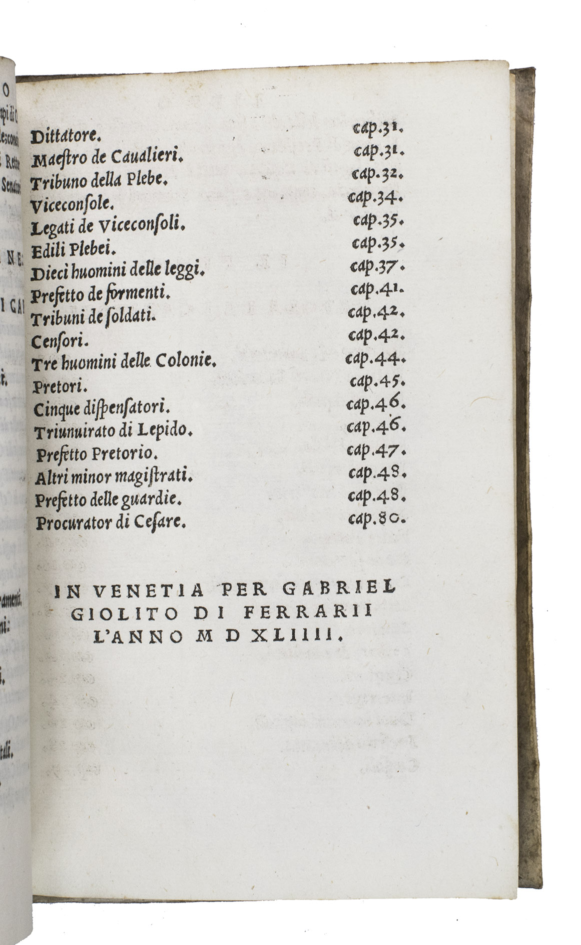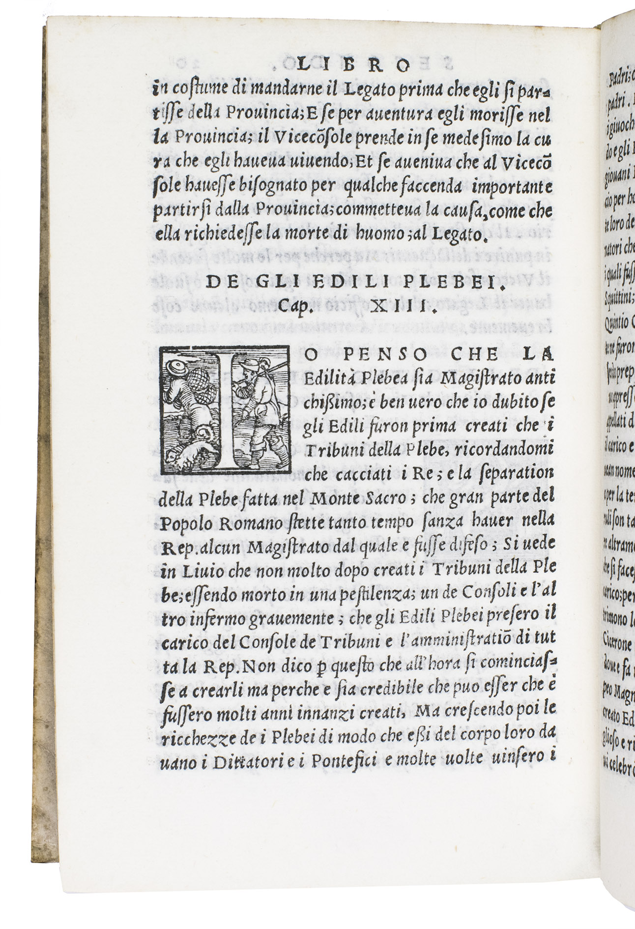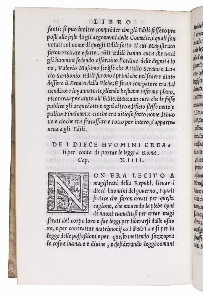 Venice, apresso Gabriel Giolito de Ferrari, 1544. 2 works in 1 volume. 8vo. With 42 woodcut decorated initials of professions, sports and past times in ad 1, and a woodcut printer's device on the title page of each work. With (bound before ad 1): ASCONIUS PEDIANUS, Quintus. Expositio in IIII. orationes M. Tullii Ciceronis contra C. Verrem.
