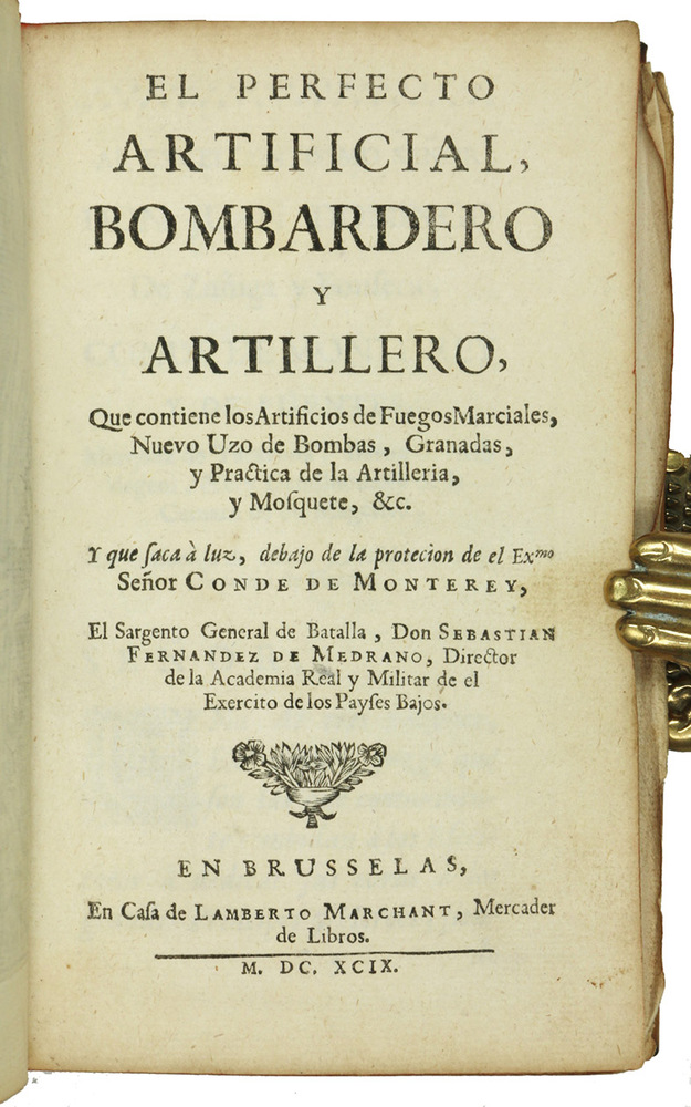 El perfecto artificial, bombardero y artillero, que contiene los artificios de fuegos marciales, nuevo uso de bombas, granadas, y practica de la artilleria, y mosquete, &c.