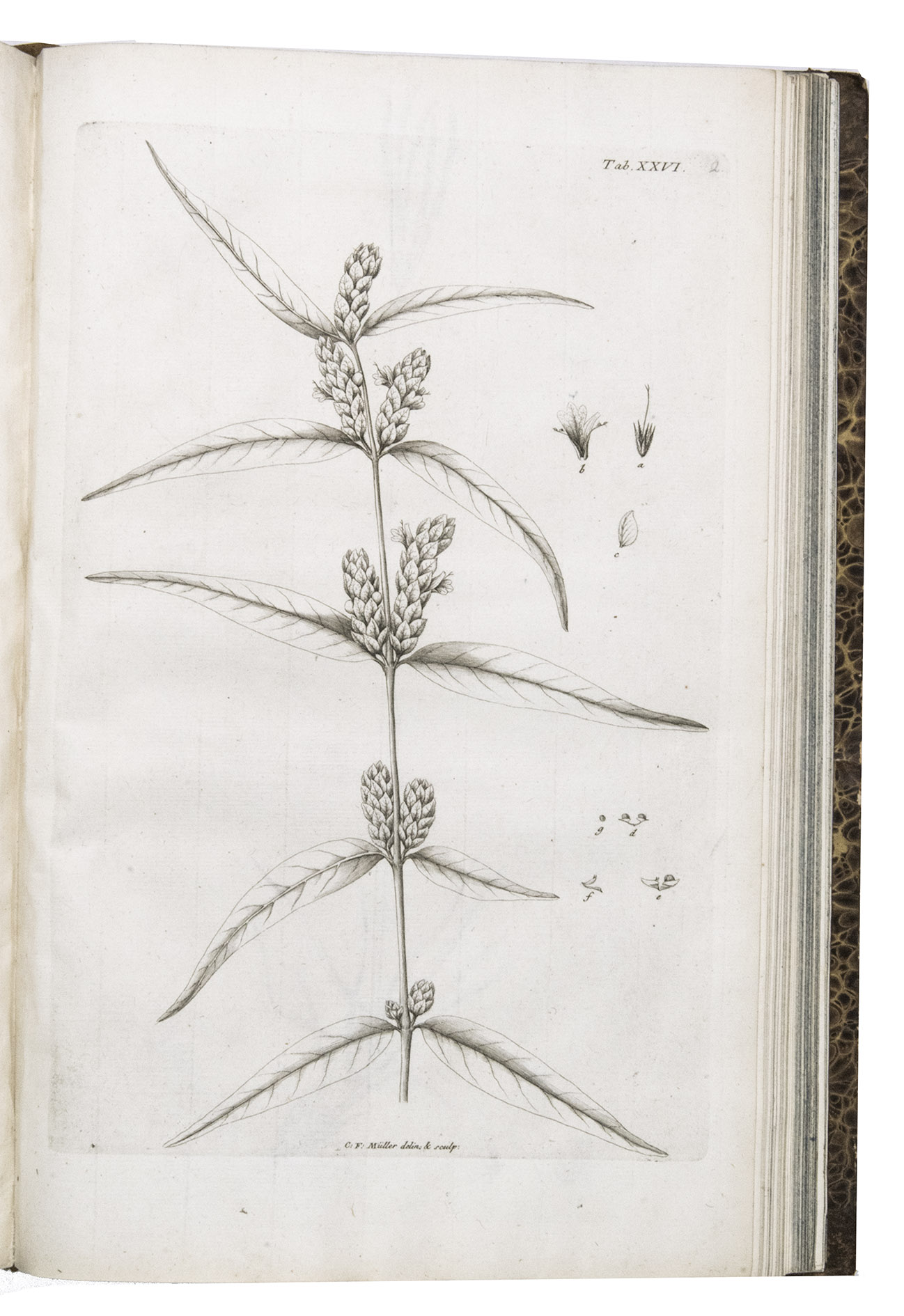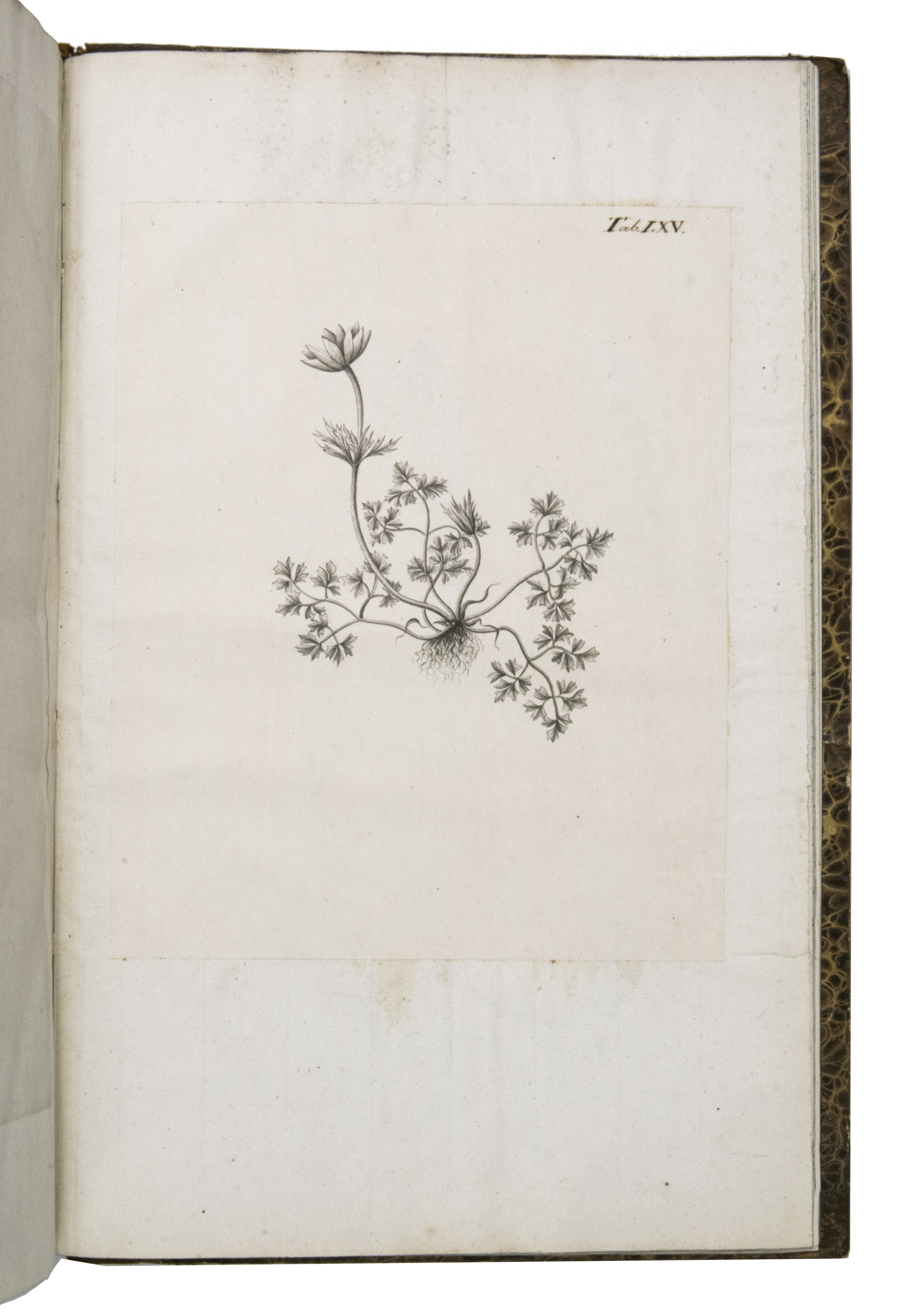 First and only edition of a description of the plants collected in Egypt, Syria, and the Arabian Peninsula during the Danish Arabia expedition (1761-1767) by the Swedish naturalist and explorer Peter Forsskål (1732-1763). The present work is among the first that is devoted to this material. It describes a selection of the collection according to Linnaean taxonomy, and has been copiously illustrated with 75 large plates. These are usually all engraved, but one has been beautifully drawn by hand in the present copy.