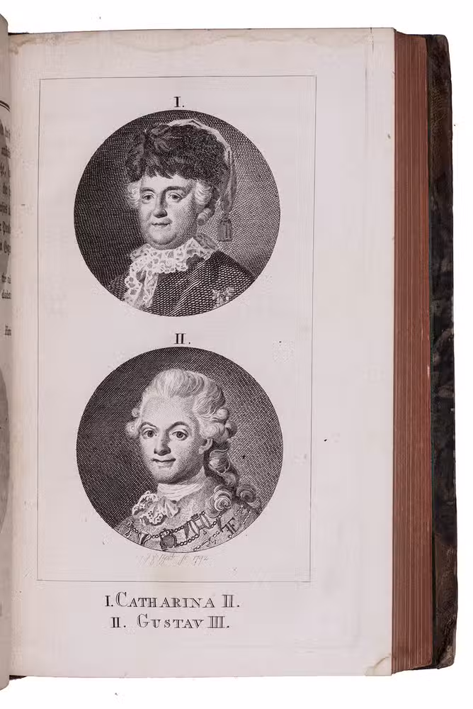 Leipzig, Paul Gotthelf Kummer [volume 1]; Berlin, Vossische Buchhandlung [volumes 2-6], 1789-1797. 6 volumes. 8vo. With 2 folding engraved maps and 20 engraved plates (2 folding). Contemporary half calf, gold-tooled spines. [12], 464; [8], 380; [6], “362” [=378]; [8], 407; [8], 435, [3]; [8], 418 pp.