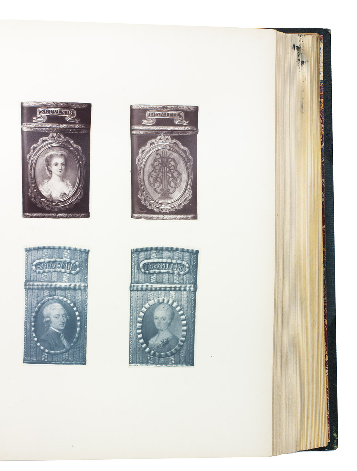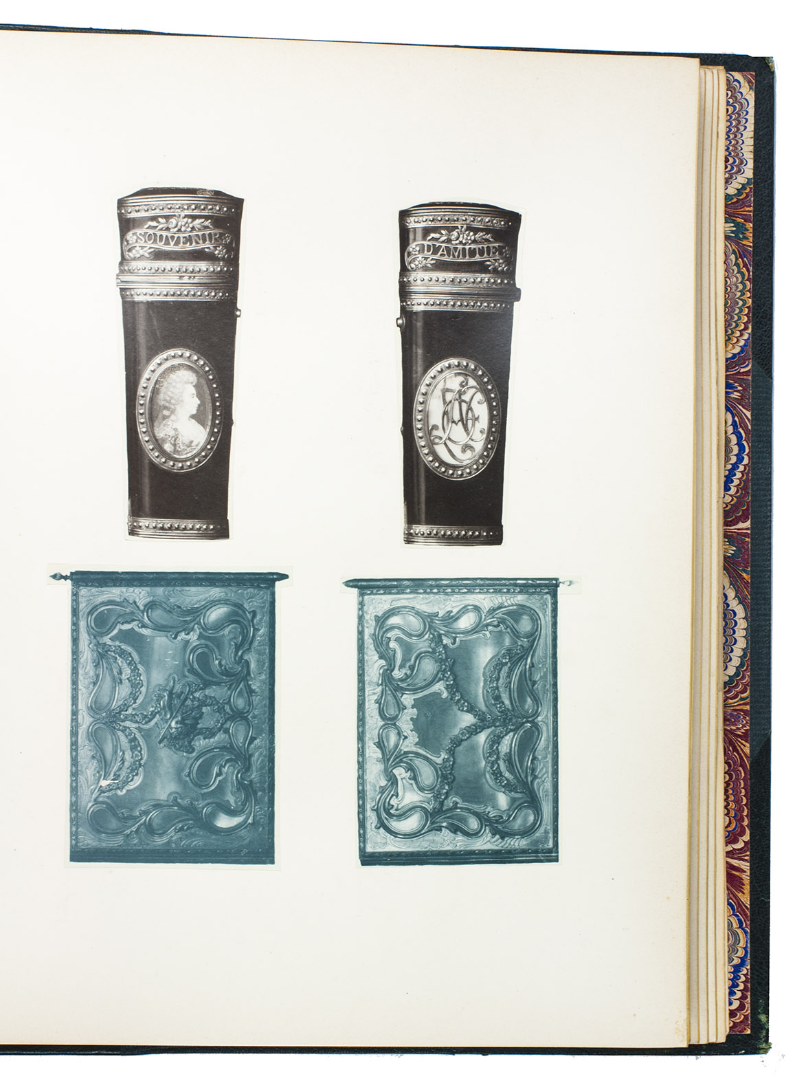 Rare catalogue of the collection of dance card cases of Bernard Franck (1848-1924), a well-known collector of memorabilia from the Napoleonic era. It shortly describes and displays both sides of 124 ornate eighteenth century jewelled cases to house dance cards issued for royal and aristocratic balls. The catalogue was only produced in 20 copies, and the collection of cases was sold to J.P. Morgan around 1910, who donated it to the Metropolitan Museum of Art in 1917.