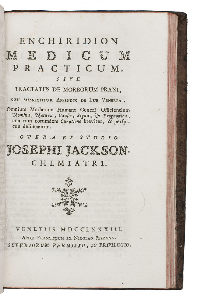 JACKSON, Joseph. Enchiridion medicum practicum, sive tractatus de morborum praxi.