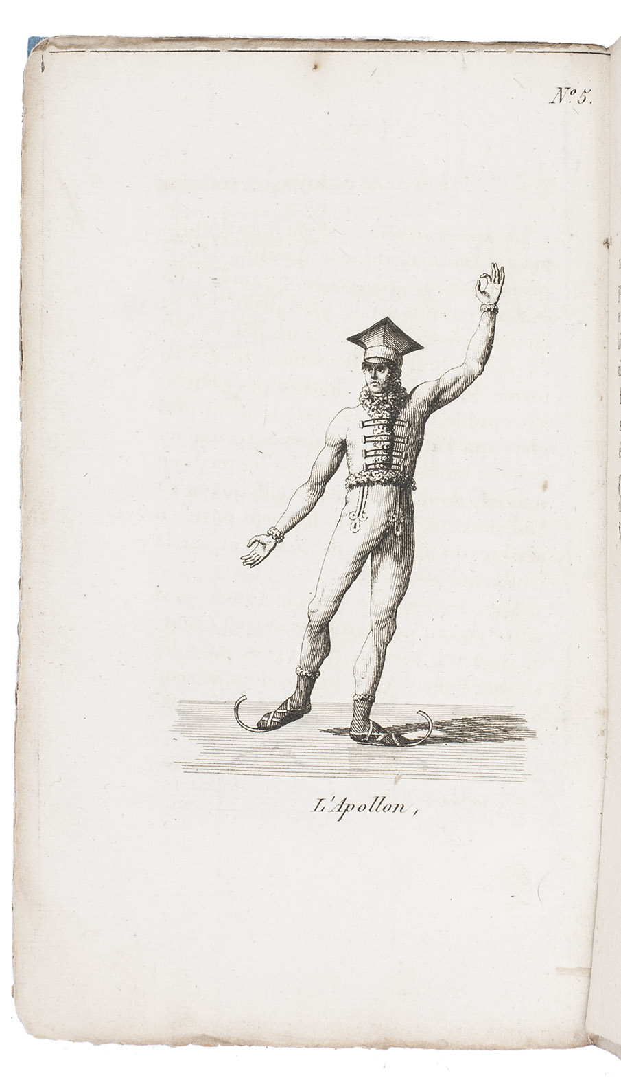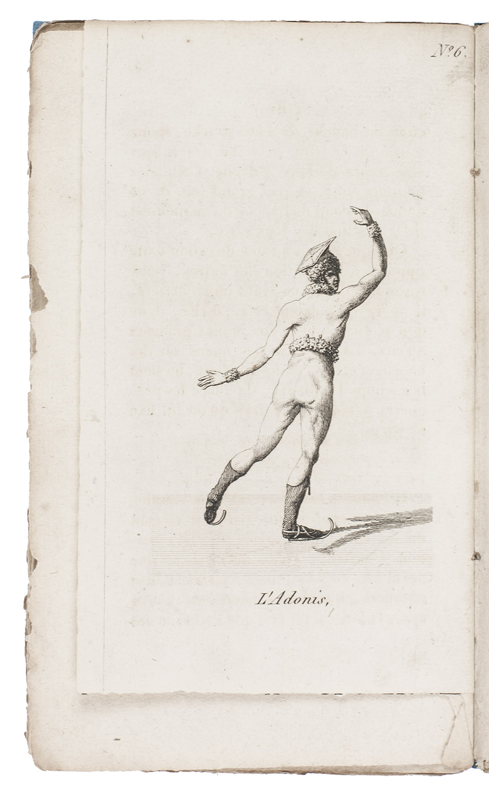 First edition of the first French ice-skating manual, describing many movements and poses with an emphasis on grace and form, illustrated with 8 engraved plates. Unlike English skaters, who advocated a more straightforward approach, Garcin compared skating with dancing, stressing grace and artistry rather than technique and precision. It is dedicated to Mademoiselle Gosselin, principal dancer at the Académie Imperial de Musique. One of the earliest separate works in any language devoted entirely to ice-skating.