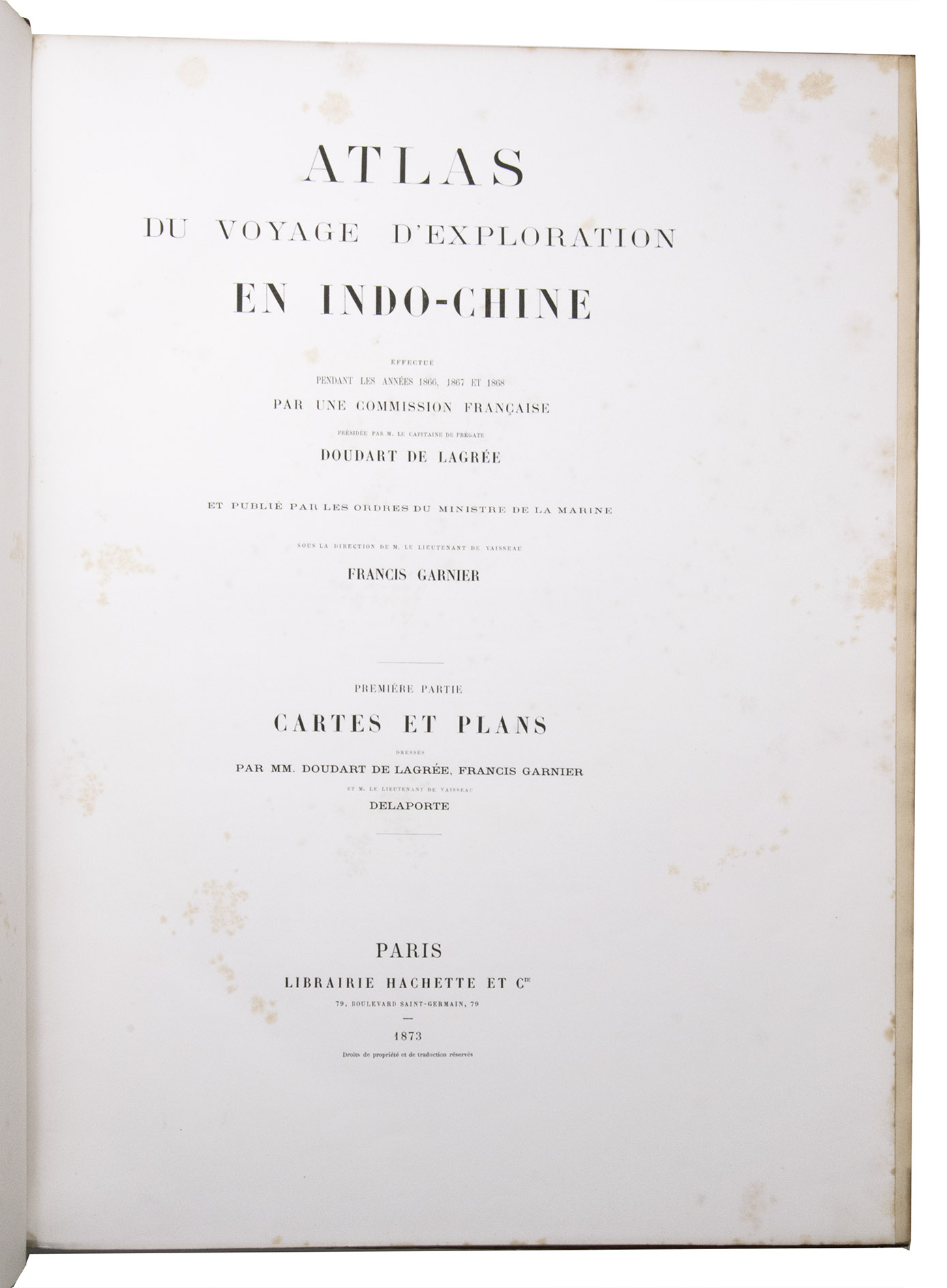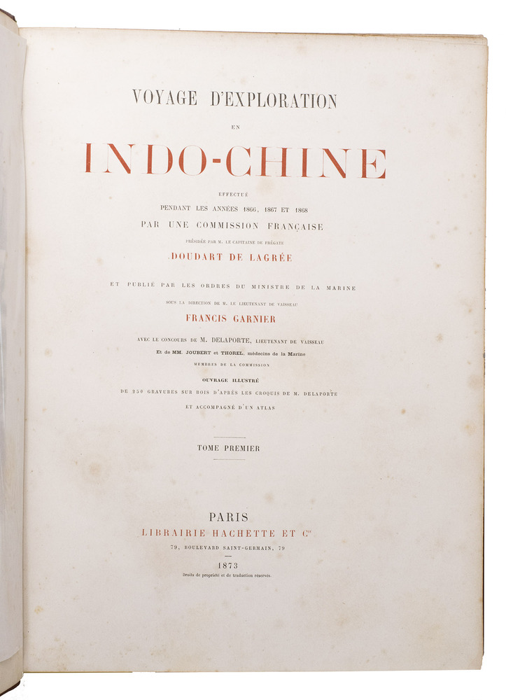 Voyage d'exploration en Indo-Chine effectué pendant les années 1866, 1867 et 1868 par une commission Française présidiée par M. le capitaine de frégate Doudart de Lagrée et publié dans les ordres du ministre de la marine sous la direction de M. le lieutenant de vaisseau Francis Garnier avec le concours de M. Delaporte, lieutenant de vaisseau et de MM. Joubert et Thorel, médécins de la marine, membres de la commission.