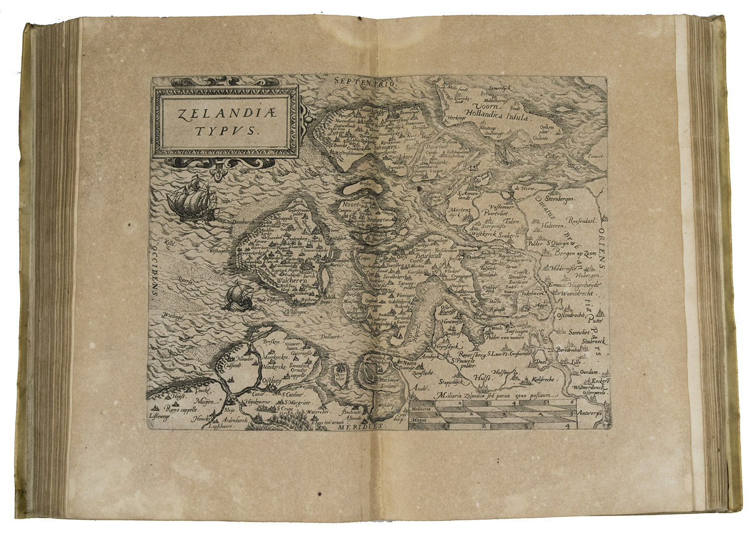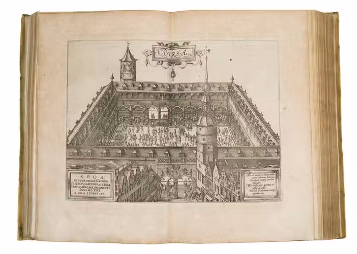 This 1588 edition is the last and at the same time the most beautiful edition published in the Southern Netherlands. In this edition Guicciardini shows us the gradual change concerning the (political) situation of the Low Countries as a result of the enduring resistance against the king of Spain. This current edition is a reprint of Plantin's Italian edition of 1581, but with the addition in the introductory part of Justus Lipsius' Latin poem, as it was printed in the French edition of 1582. Guicciardini's dedicatory to Philip II dated October 20, 1566 is also reproduced, but a new note by the author to the reader dated November 20, 1587 replaces the older one dated 1566. For this edition, Plantin used the improved and numbered copperplates of the French edition of 1582. The portrait of Philip II however is almost identical of those from the 1581 and 1582 editions, but is printed from a new copperplate (this portrait bears a.o. the small flower consisting of 8 instead of 7 balls at the upper side of the caption and to HISPANIARVM is added the second I). In the coat of arms of Philip, the coat of arms of Portugal is now added. Also, the copperplate of the plan of Antwerp is adjusted because of the demolition activities on the citadel and the year MDLXXI was changed into MDLXXXVII.