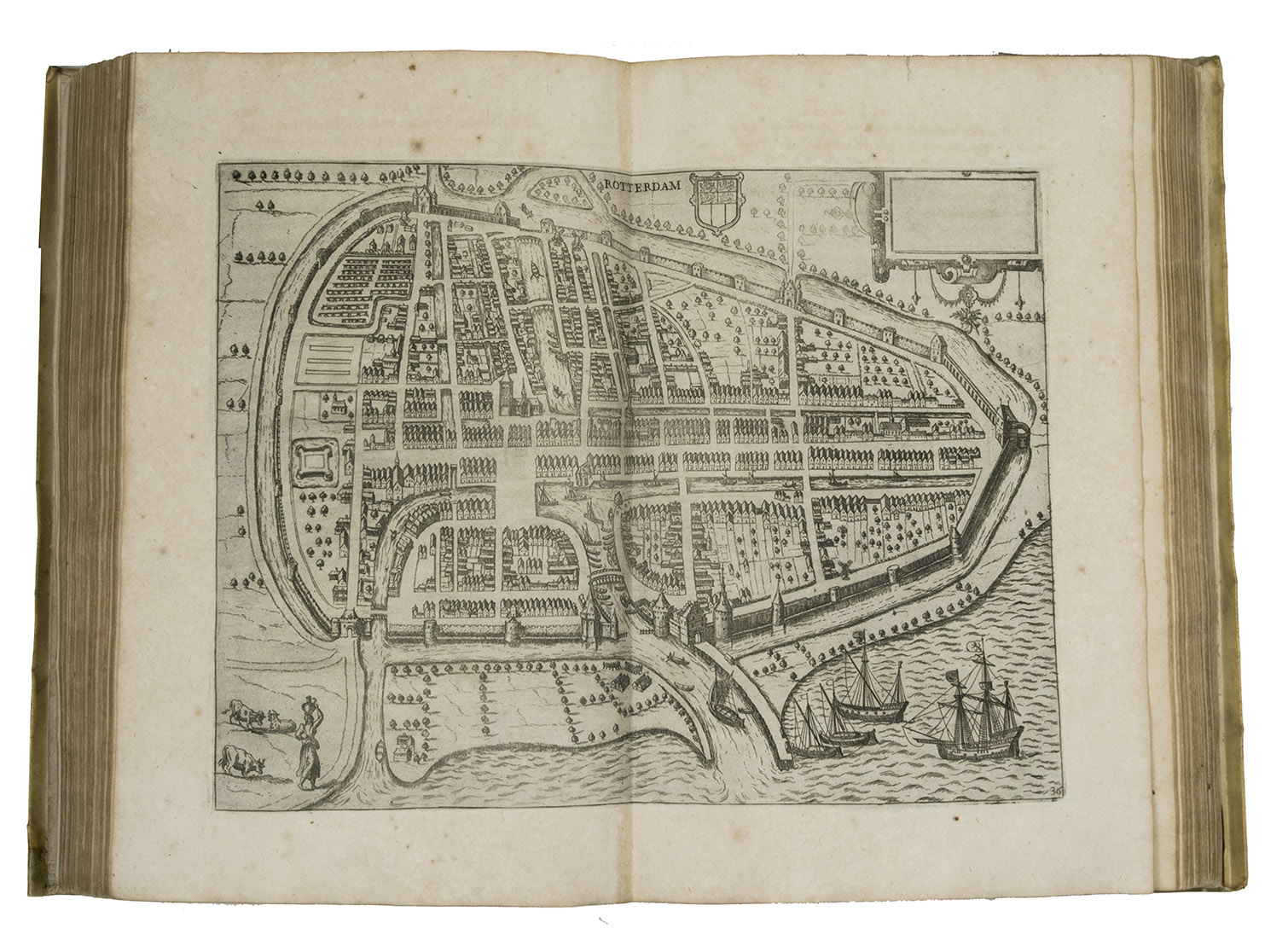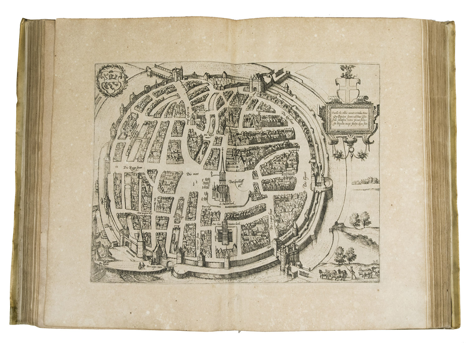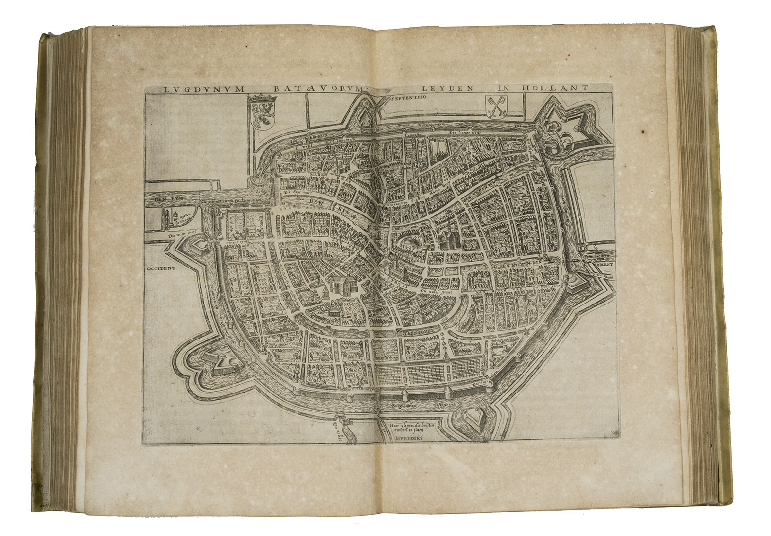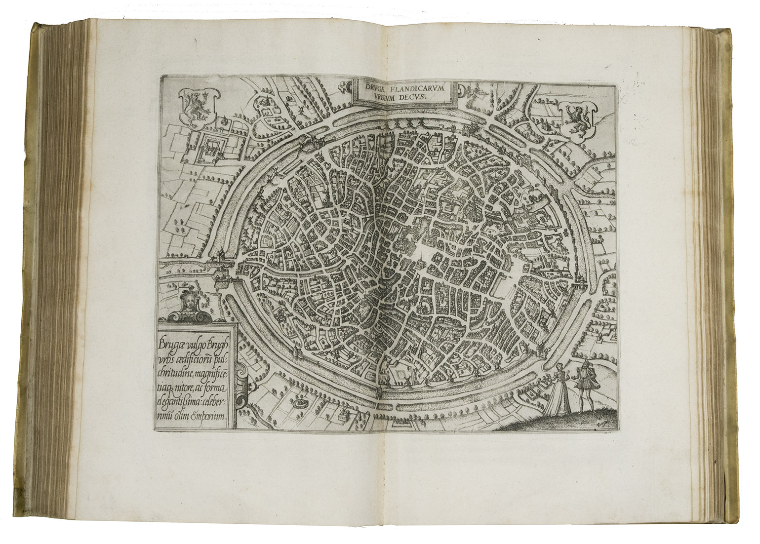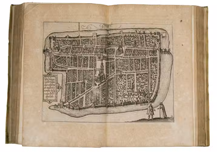Third Italian edition of the first illustrated description of the Low Countries. This popular guide to the Netherlands was written by the nobleman Ludovico Guicciardini (1521-1589), an Antwerp-based merchant from Florence, Italy. Most of the cities shown in the plans and views had never before been depicted in print before. Not only was Guicciardini's work a great success, going through dozens of editions in a wide variety of languages, but its maps, plans and views were also copied for decades, both for use in other works and for separate publication.