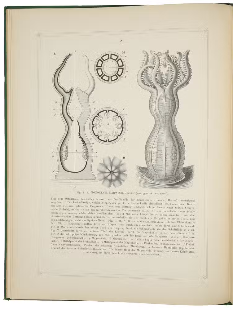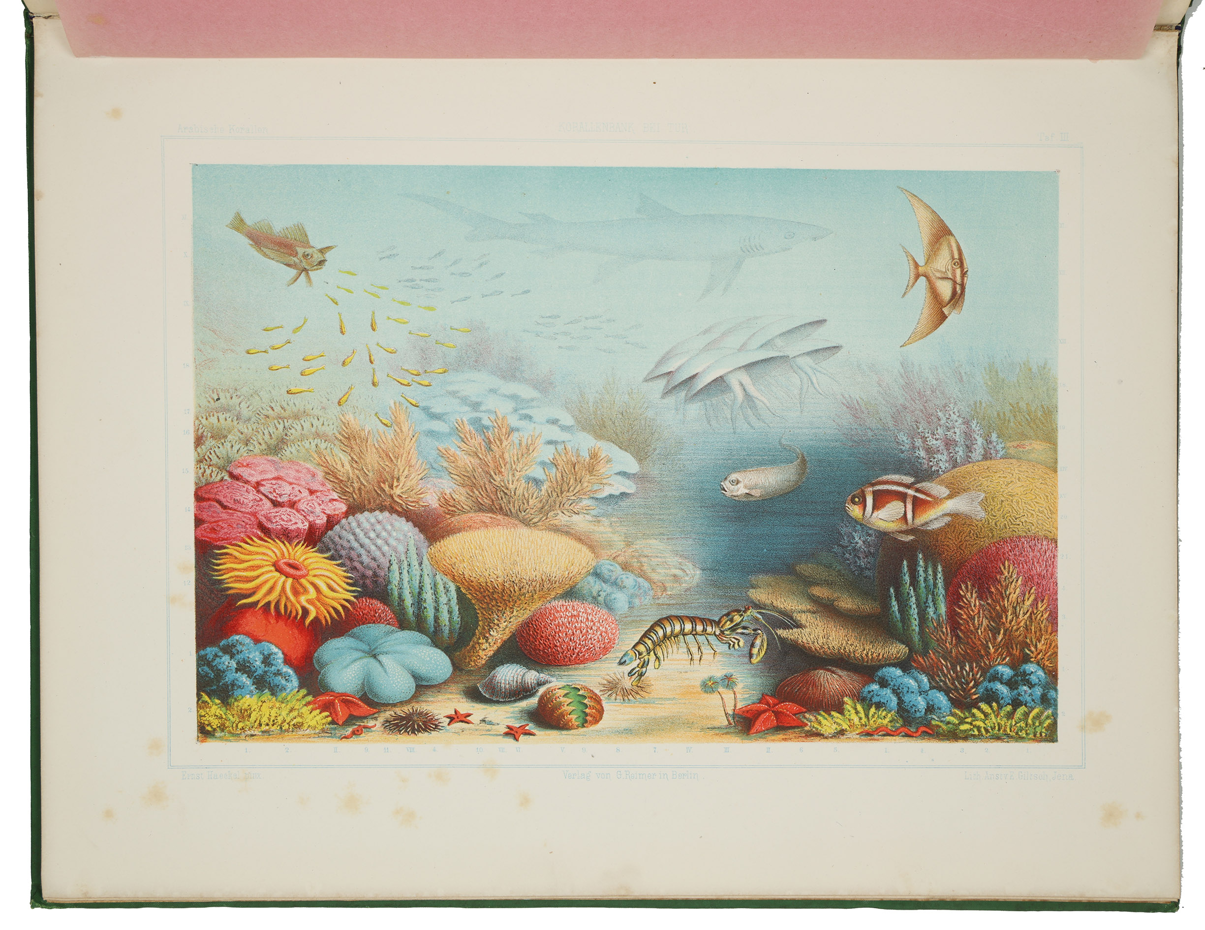 First edition of this splendidly illustrated classic. The plates show corals (2), an Arabic tent camp, and the sunset over the Sinai Peninsula, as well as a genealogical tree of corals.