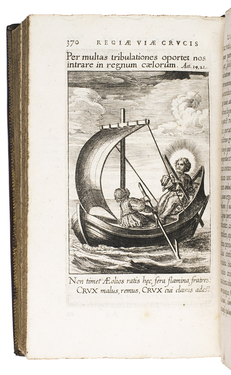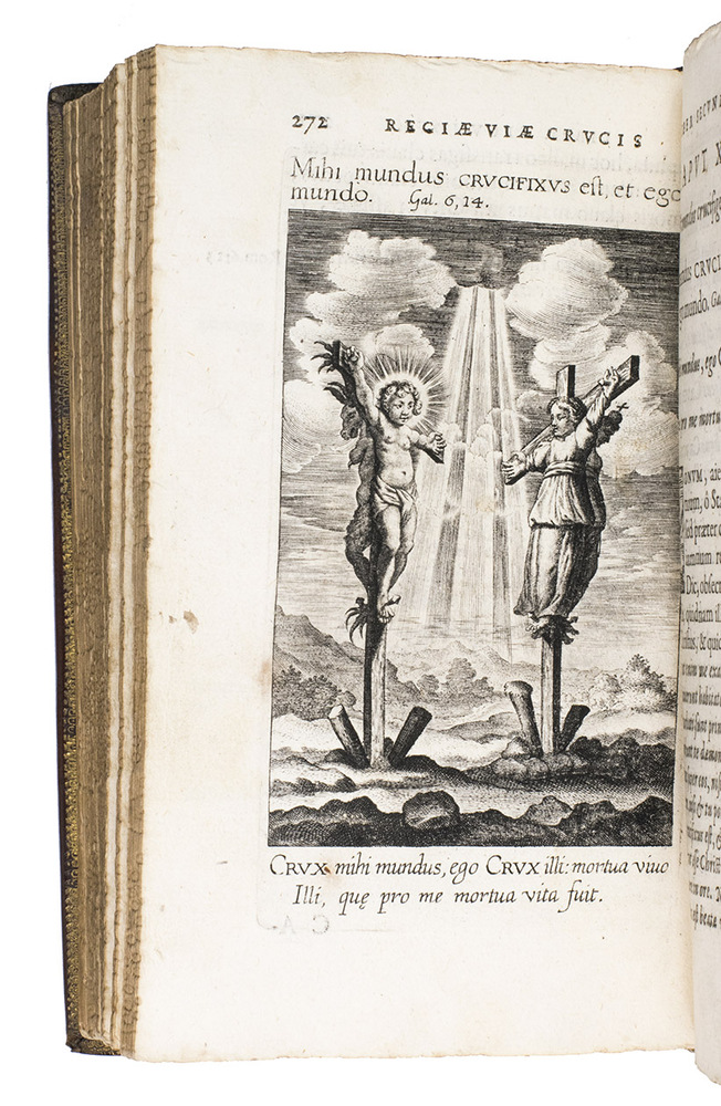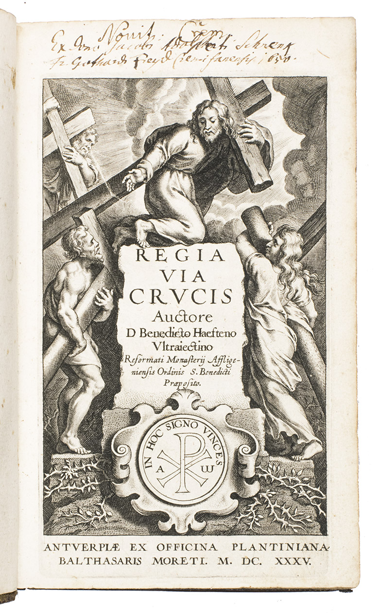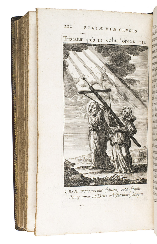 First edition (first issue), the only edition in the original Latin, of a lovely devotional emblem book with an engraved title page and 38 engraved emblems, all on the theme of the holy cross, all engraved by Cornelis Galle the elder (1576-1650), at least the title page after a drawing by Peter Paul Rubens (1577-1648).