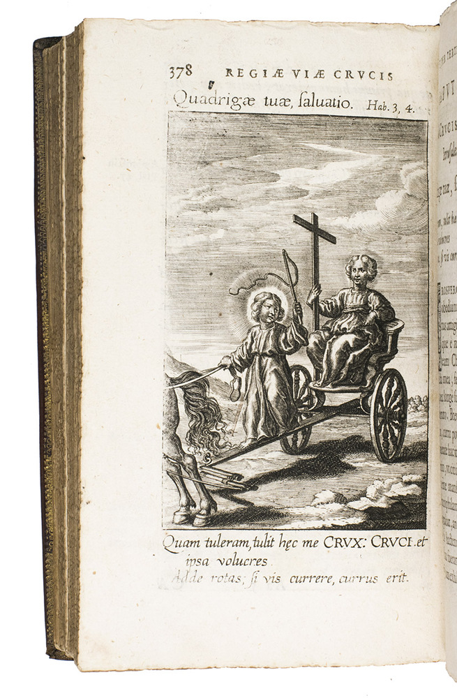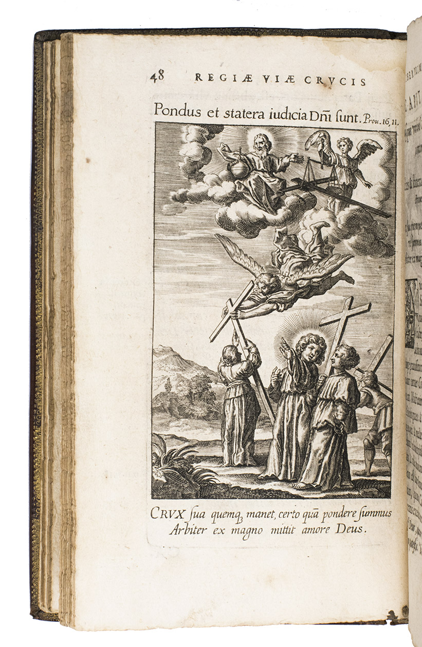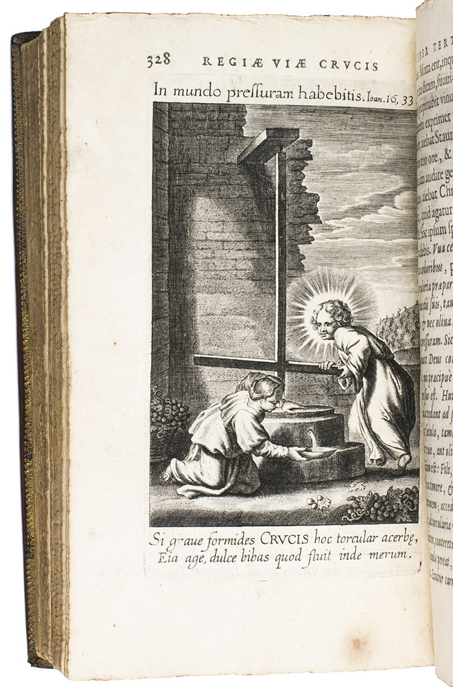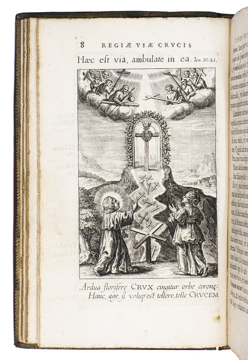 First edition (first issue), the only edition in the original Latin, of a lovely devotional emblem book with an engraved title page and 38 engraved emblems, all on the theme of the holy cross, all engraved by Cornelis Galle the elder (1576-1650), at least the title page after a drawing by Peter Paul Rubens (1577-1648).