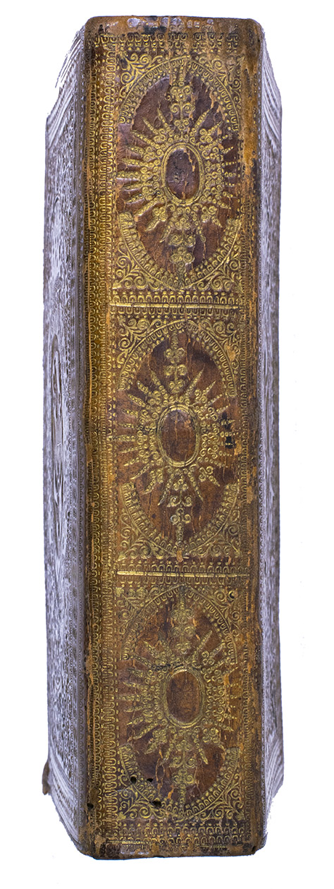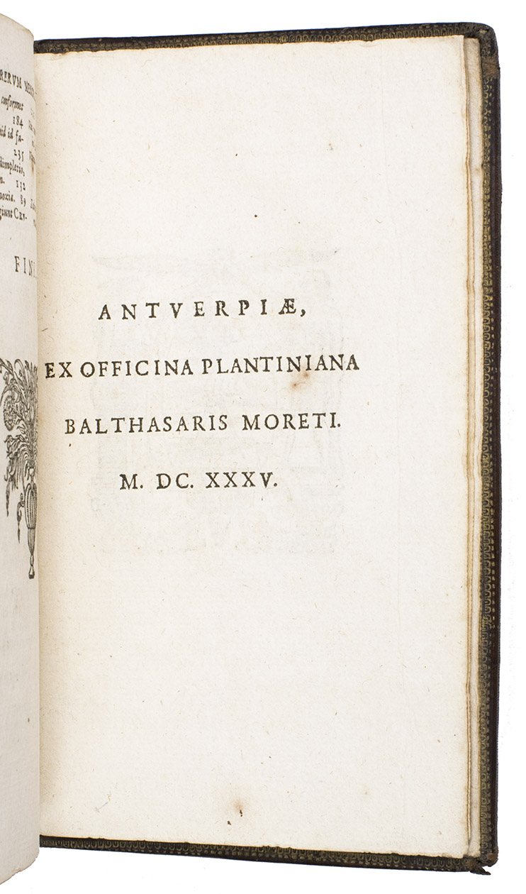 With water stains at the head of one quire and the half-title speckled with ink(?), but generally in very good condition. The binding shows a few small wormholes, minor cracks or small abrasions and lacks the ties, but is still very good, with the tooling well preserved. BCNI 8834; Funck p. 328; Landwehr, Emblem books Low Countries 271; Praz, p. 361; STCV 6843143 (3 copies).