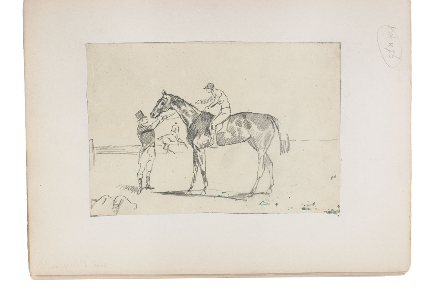 In very good condition, with only some minor wrinkles in one drawing and faint stains in another. Portfolio good. A charming collection of horse drawings, mostly from the early 1850s.