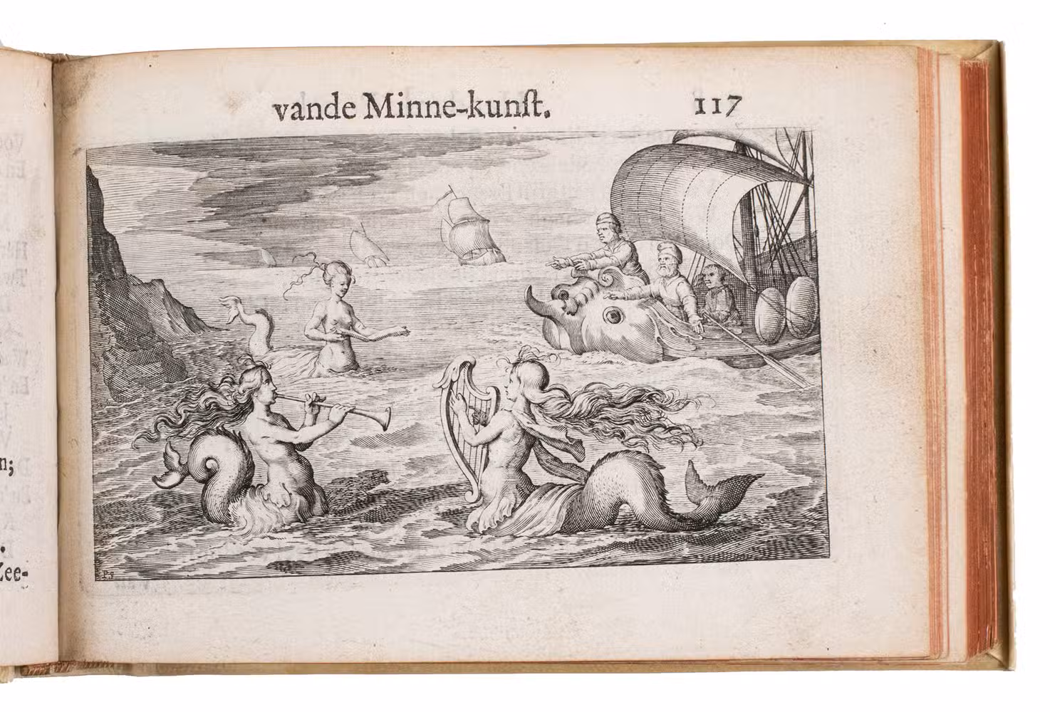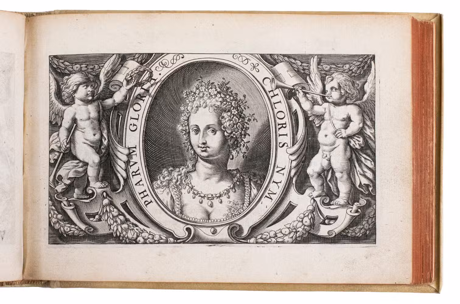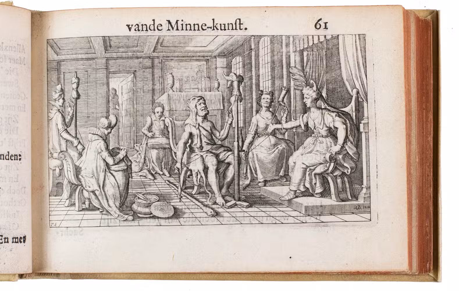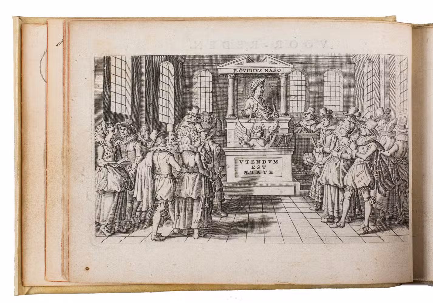 The first contains a poetic adaptation of Ovid's Ars Amatoria, beautifully illustrated with 12 plates, including the frontispiece with the motto "sine Cerere et Baccho friget Venus", by one of the gifted artists of the Golden Age of Dutch book illustration, Pieter Serwouters (1586-1657).