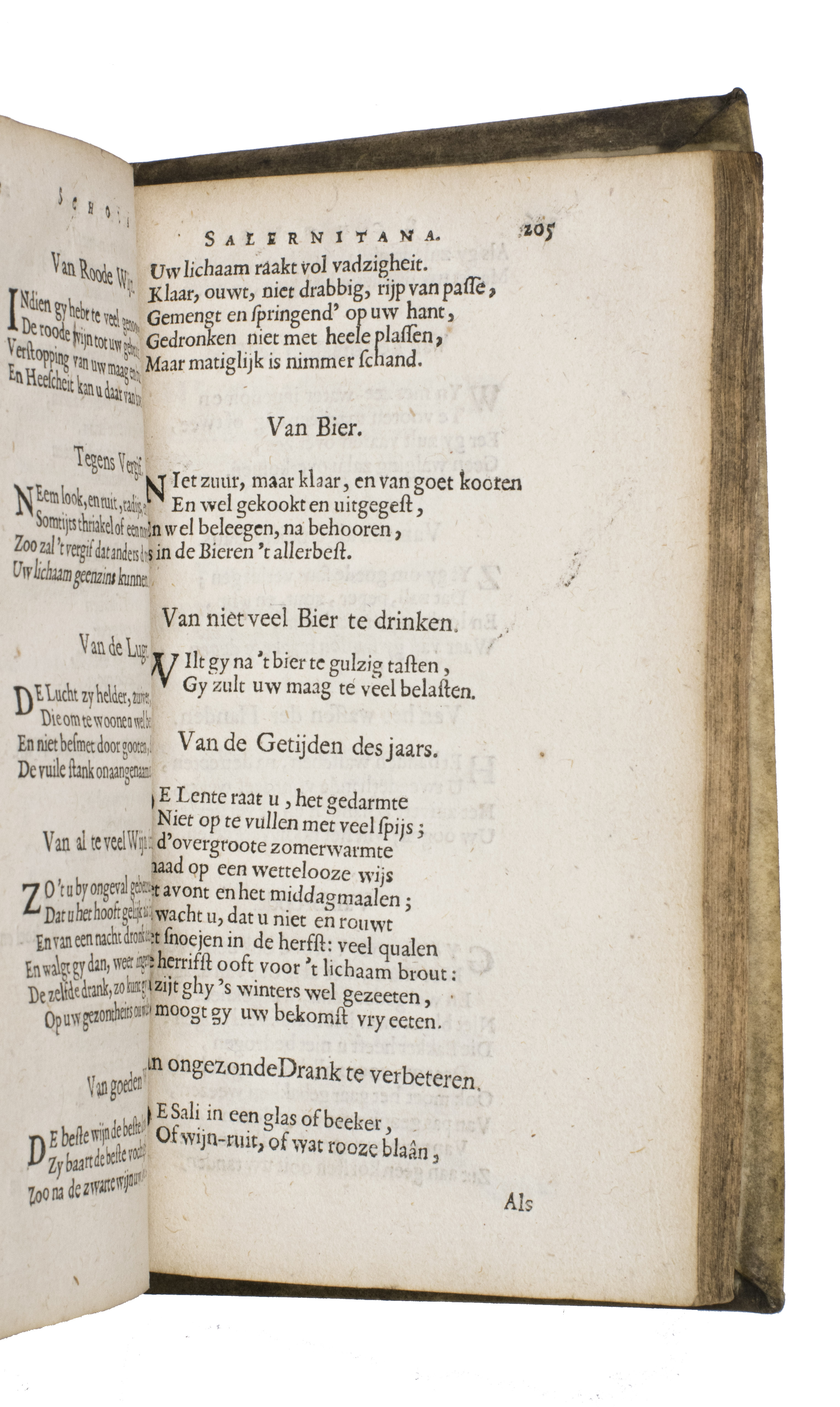 The vellum is slightly soiled. The pastedowns are detached from the boards, but the structural integrity of the binding is still intact, the leaves are lightly browned. Otherwise in good condition. Scheepers I, 106, Scheurleer, Liedboeken, 4224; STCN 843925868; USTC 1843682; Te Winkel III (1923), p. 524; cf. NNBW IX, cols. 351-2.