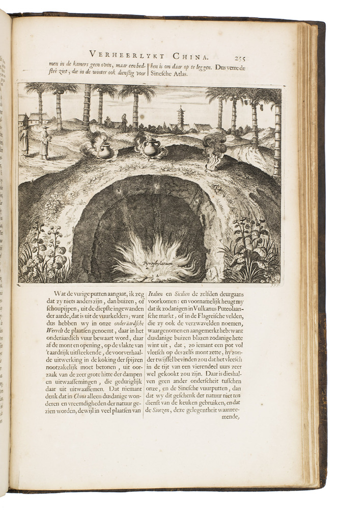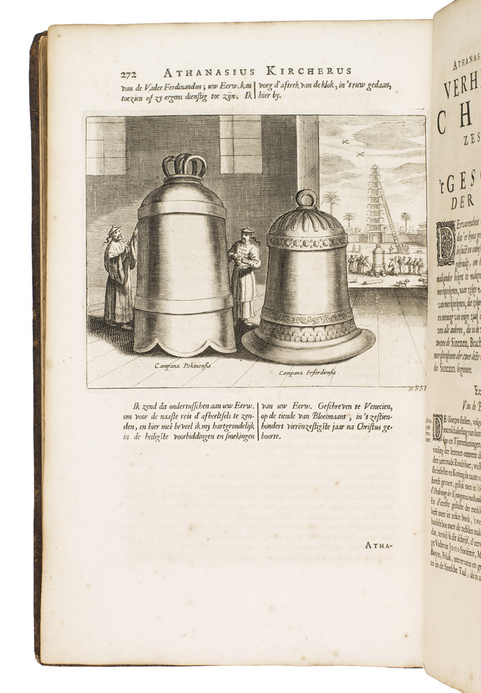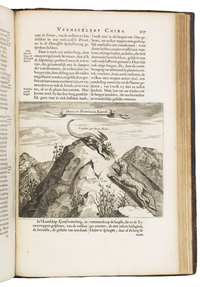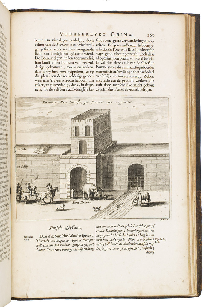 First and only edition of Glazemaker's Dutch translation of China illustrata, "one of the most influential books in shaping the European conception of China in its Day" (Löwendahl), by the great Jesuit scientist Athanasius Kircher (1601/02-1680). The work is divided into six parts, the first on the inscriptions of the famous Nestorian monument (early Chinese Christian inscriptions, in Chinese and Syriac lettering), the second part gives a history of China and early Christianity, the third on idolatry in Chinese and other Asian cultures, including Indian and Japanese, the fourth describes China's government, its cities and its nature, the fifth details China's architectural and mechanical marvels and in the sixth Kircher returns to the Chinese language and the origins of its characters.