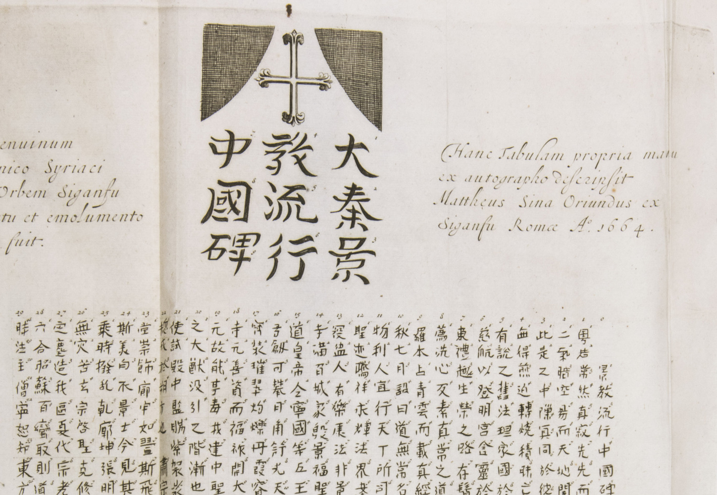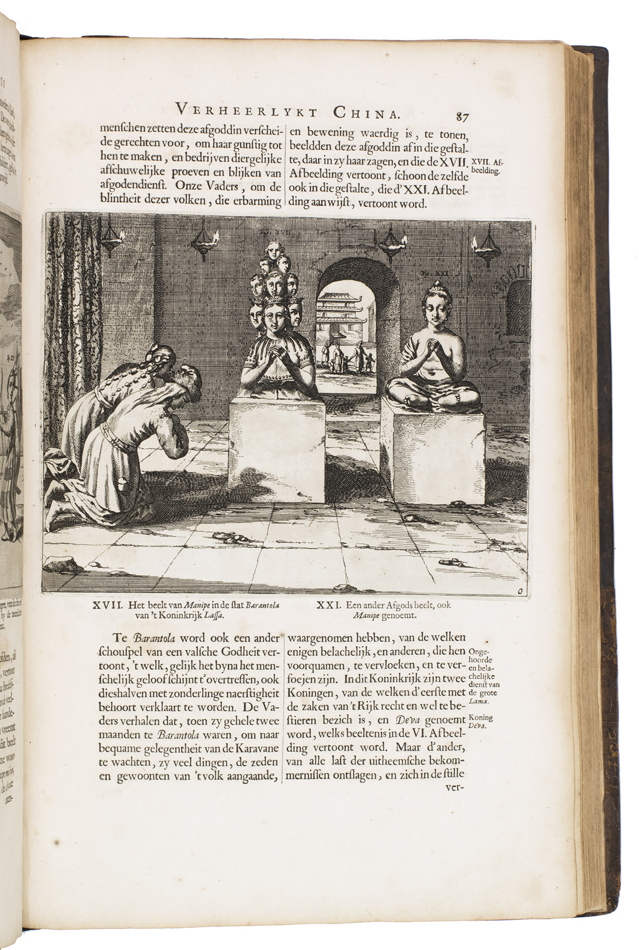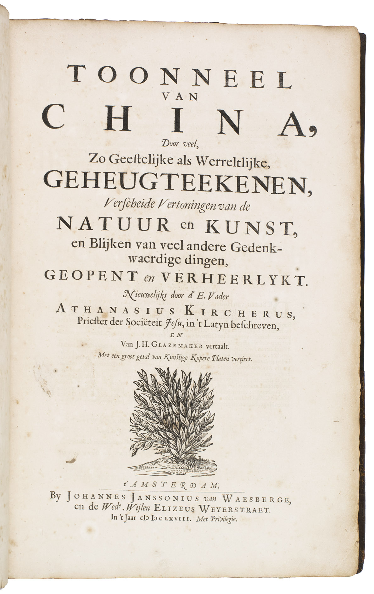 First and only edition of Glazemaker's Dutch translation of China illustrata, "one of the most influential books in shaping the European conception of China in its Day" (Löwendahl), by the great Jesuit scientist Athanasius Kircher (1601/02-1680). The work is divided into six parts, the first on the inscriptions of the famous Nestorian monument (early Chinese Christian inscriptions, in Chinese and Syriac lettering), the second part gives a history of China and early Christianity, the third on idolatry in Chinese and other Asian cultures, including Indian and Japanese, the fourth describes China's government, its cities and its nature, the fifth details China's architectural and mechanical marvels and in the sixth Kircher returns to the Chinese language and the origins of its characters.