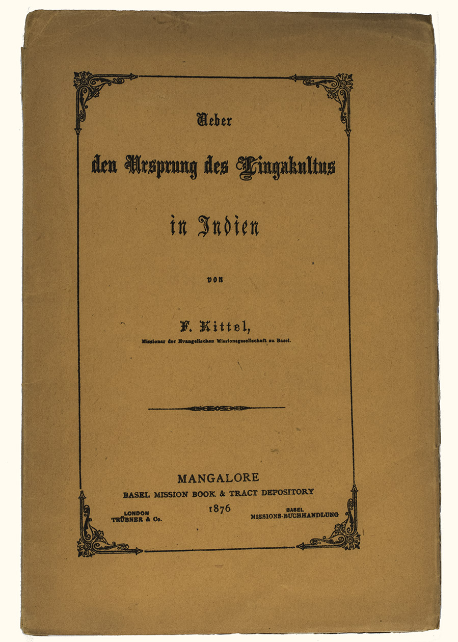 The German missionary to India Ferdinand Kittel (1832-1903), presented in 1876 with his Ueber den Ursprung des Lingakultus in Indien a study on the origins of the cult around the lingam in India. The lingam is a sacred object in Hinduism that represents the god Shiva and is considered a symbol of generative power. It is commonly found in Shaivite temples and private shrines across India and is often placed in the centre, surrounded by other deities.