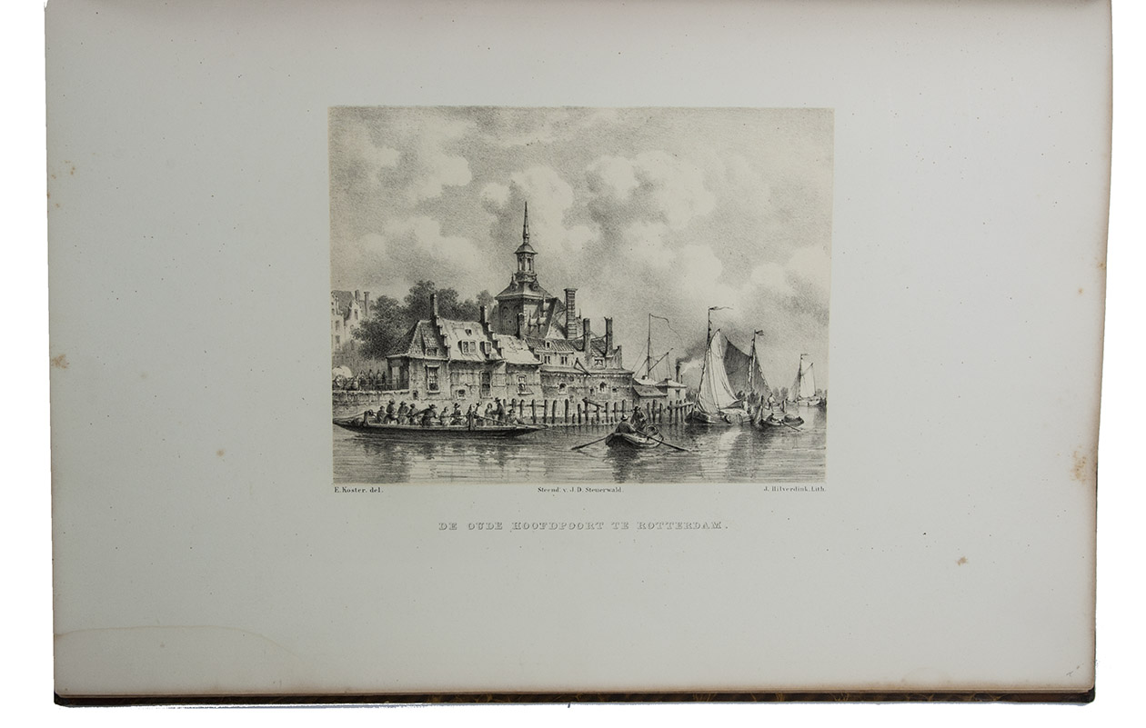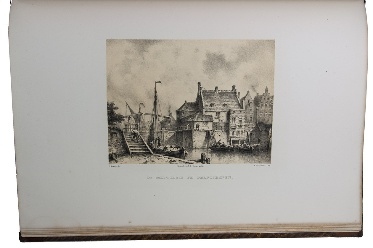 First and only edition of an album with twenty four beautifully drawn lithographed Dutch city and harbour views. Lithographed by Johannes Hilverdink (1813-1902) after sketches of Everhardus Koster (1817-1892). Both artists are best known for their marine paintings.