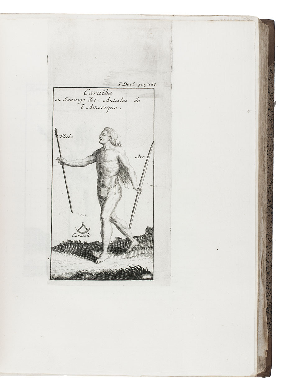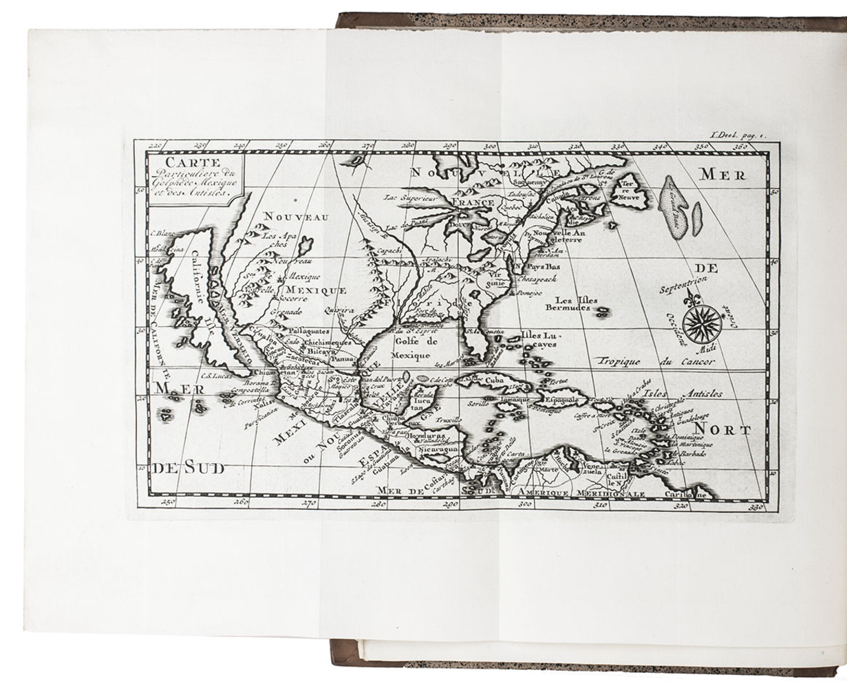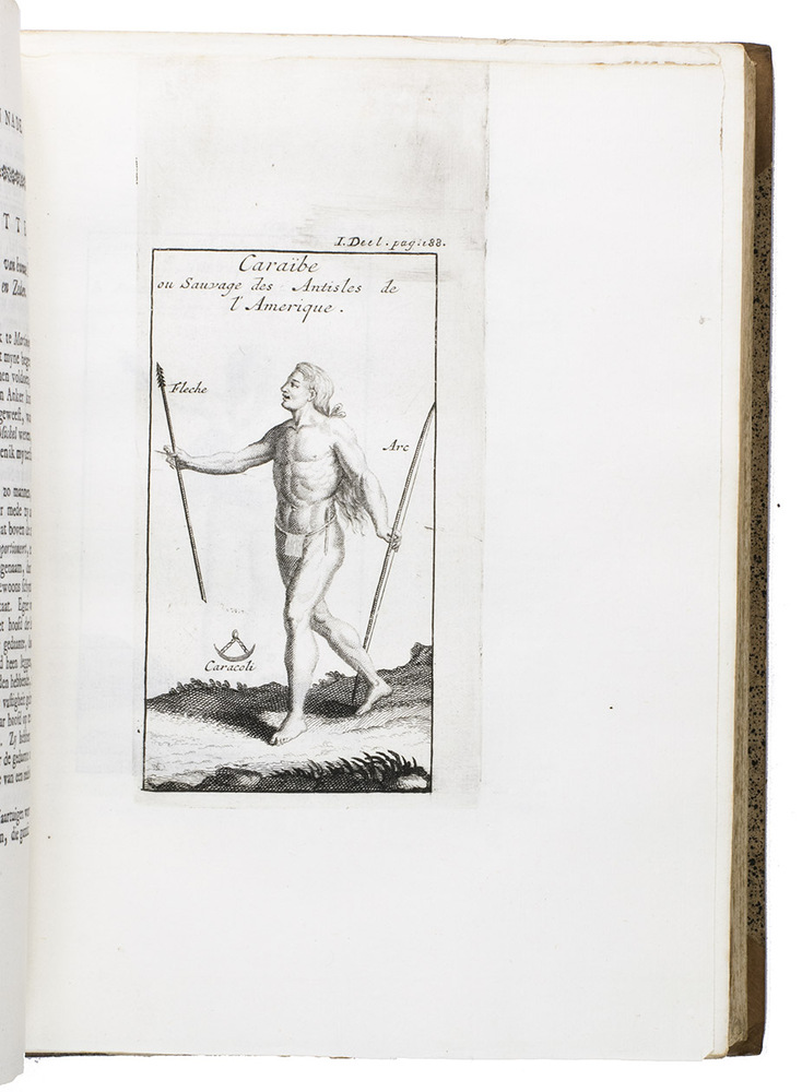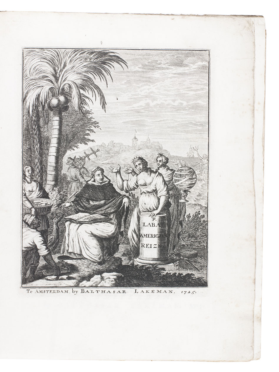First Dutch edition of Labat's detailed journal recording his travels in the Caribbean. The work is replete with historical observations and contains important sociological, geographical, zoological, anthropological and gastronomic remarks, including an elaborate treatise on the cultivation of cocoa and the fabrication of chocolate. The maps depict North and part of South America with the Caribbean, the islands of Martinique, Barbados, Santa Domingo, etc.