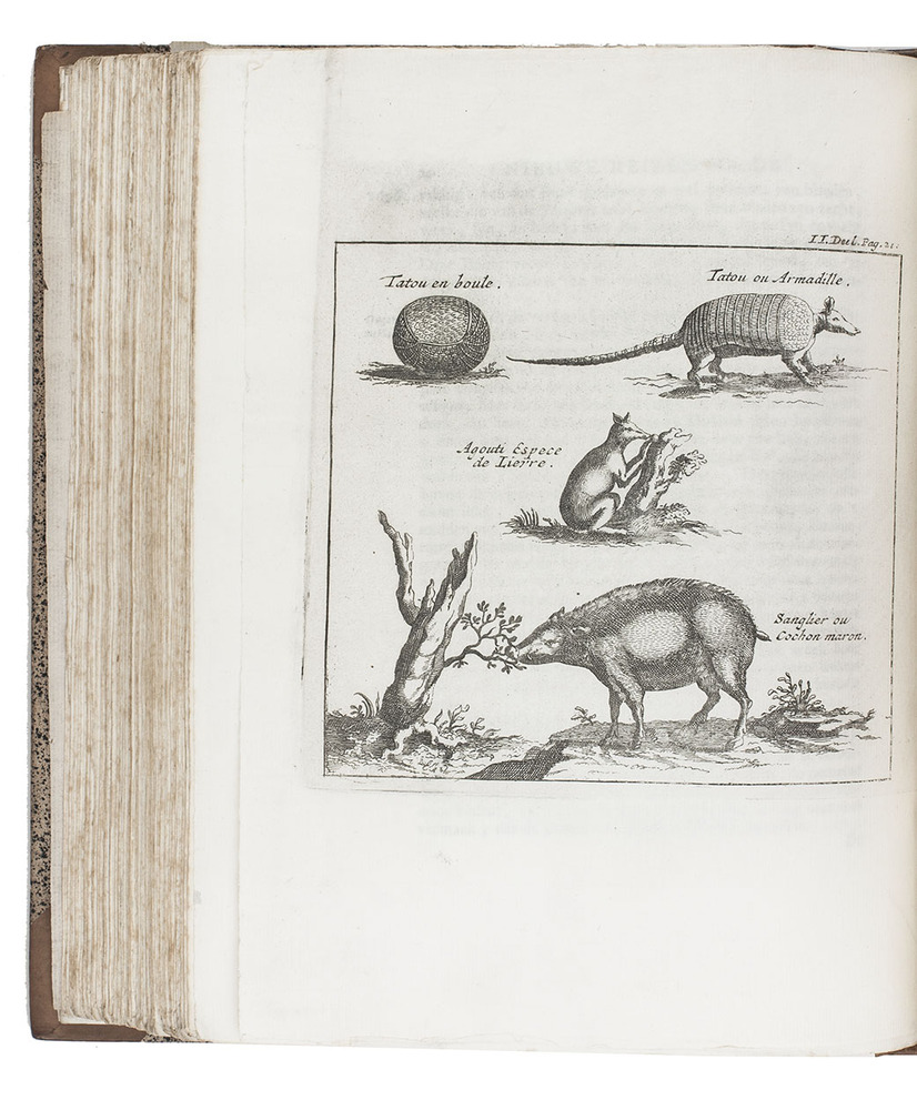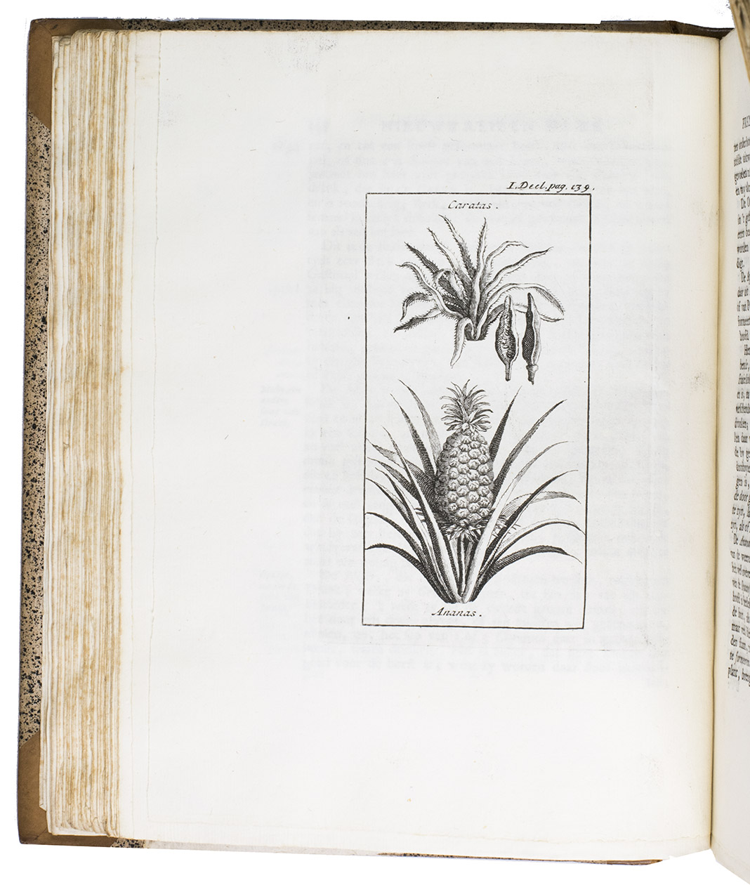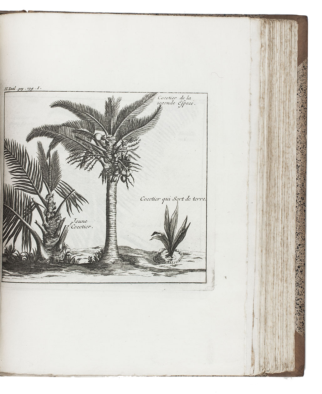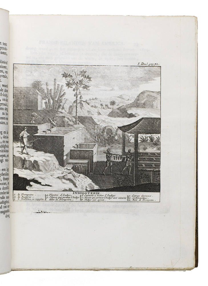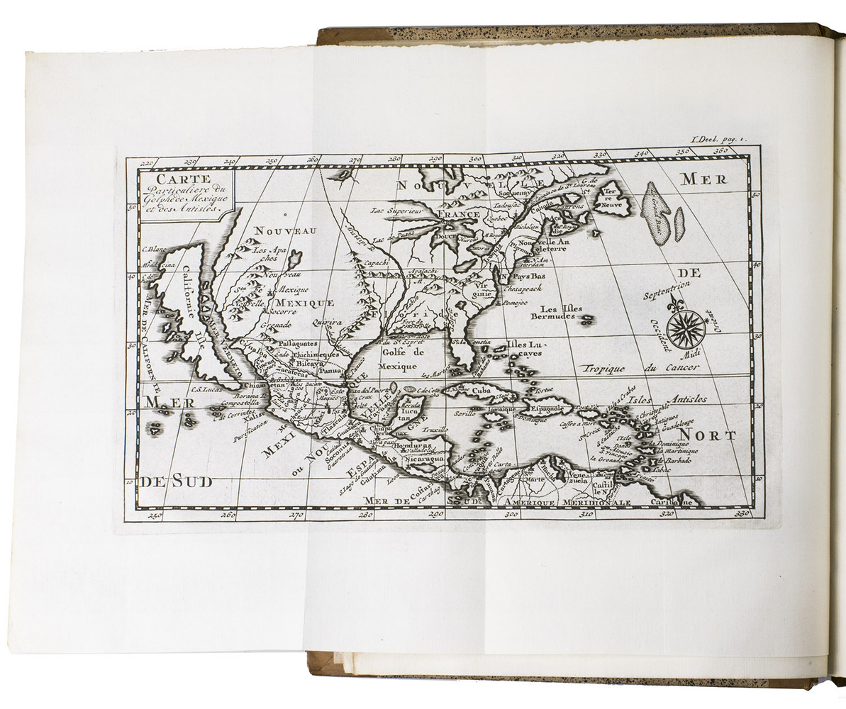 First Dutch edition of Labat's detailed journal recording his travels in the Caribbean. The work is replete with historical observations and contains important sociological, geographical, zoological, anthropological and gastronomic remarks, including an elaborate treatise on the cultivation of cocoa and the fabrication of chocolate. The maps depict North and part of South America with the Caribbean, the islands of Martinique, Barbados, Santa Domingo, etc.