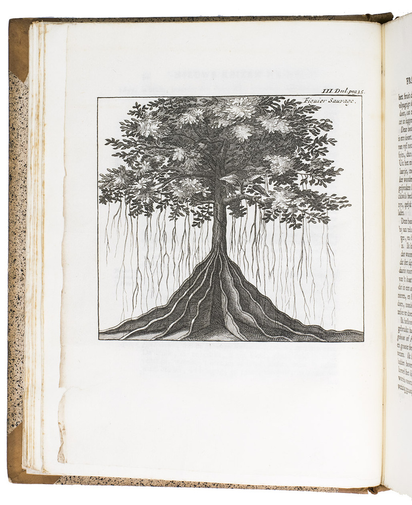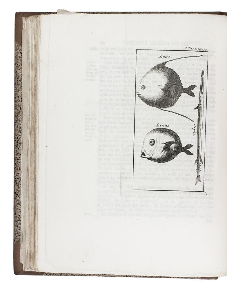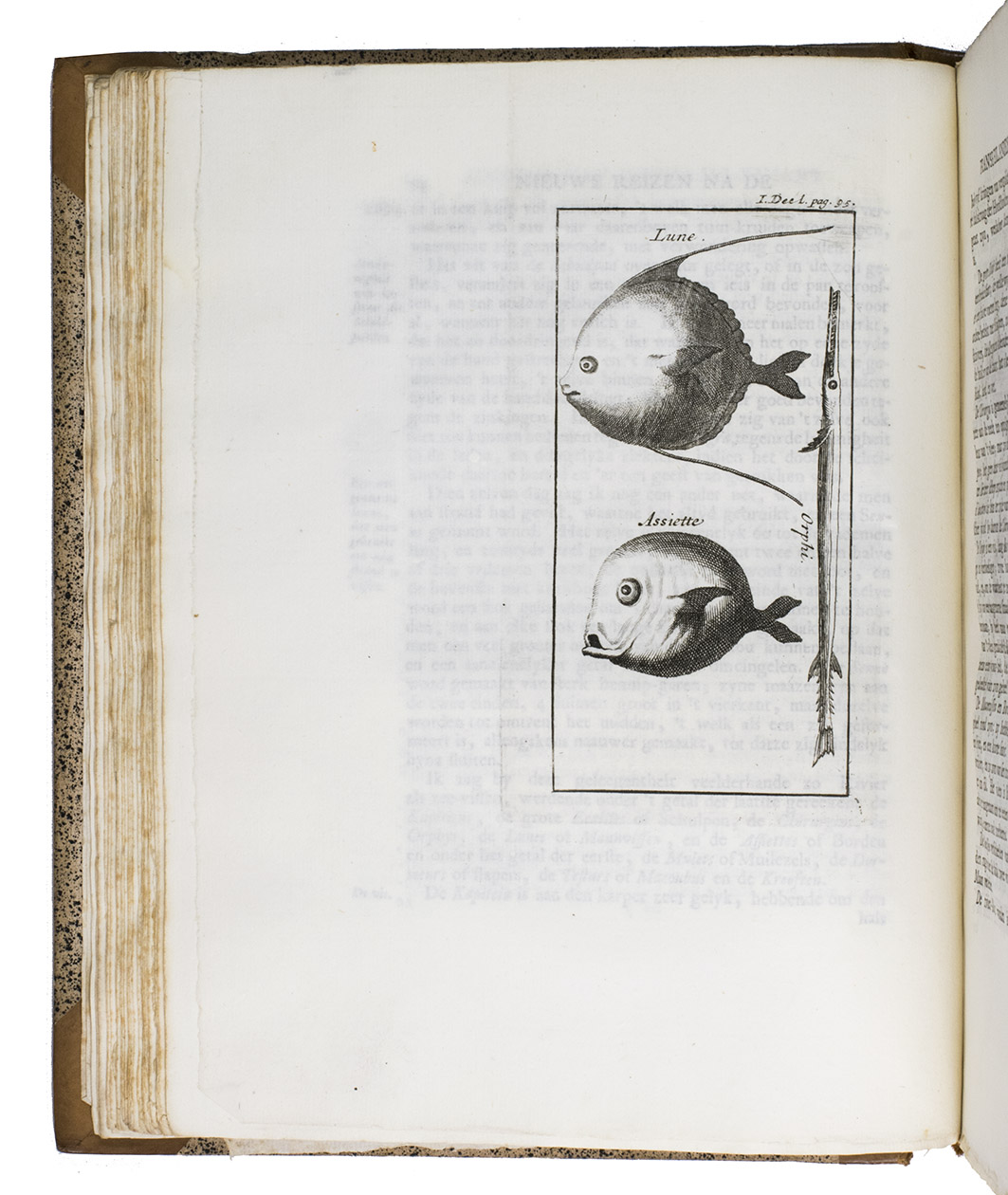 Amsterdam, Balthasar Lakeman, 1725. 4 volumes bound as 2. 4to. With 2 engraved frontispieces, 11 folding engraved maps and plans, and 83 full-page plates. Contemporary polished half calf. [2], 18, 350; [1 blank], [1], 404; [2], 235, 254; [1 blank], [4], 200, 167, [32] pp.