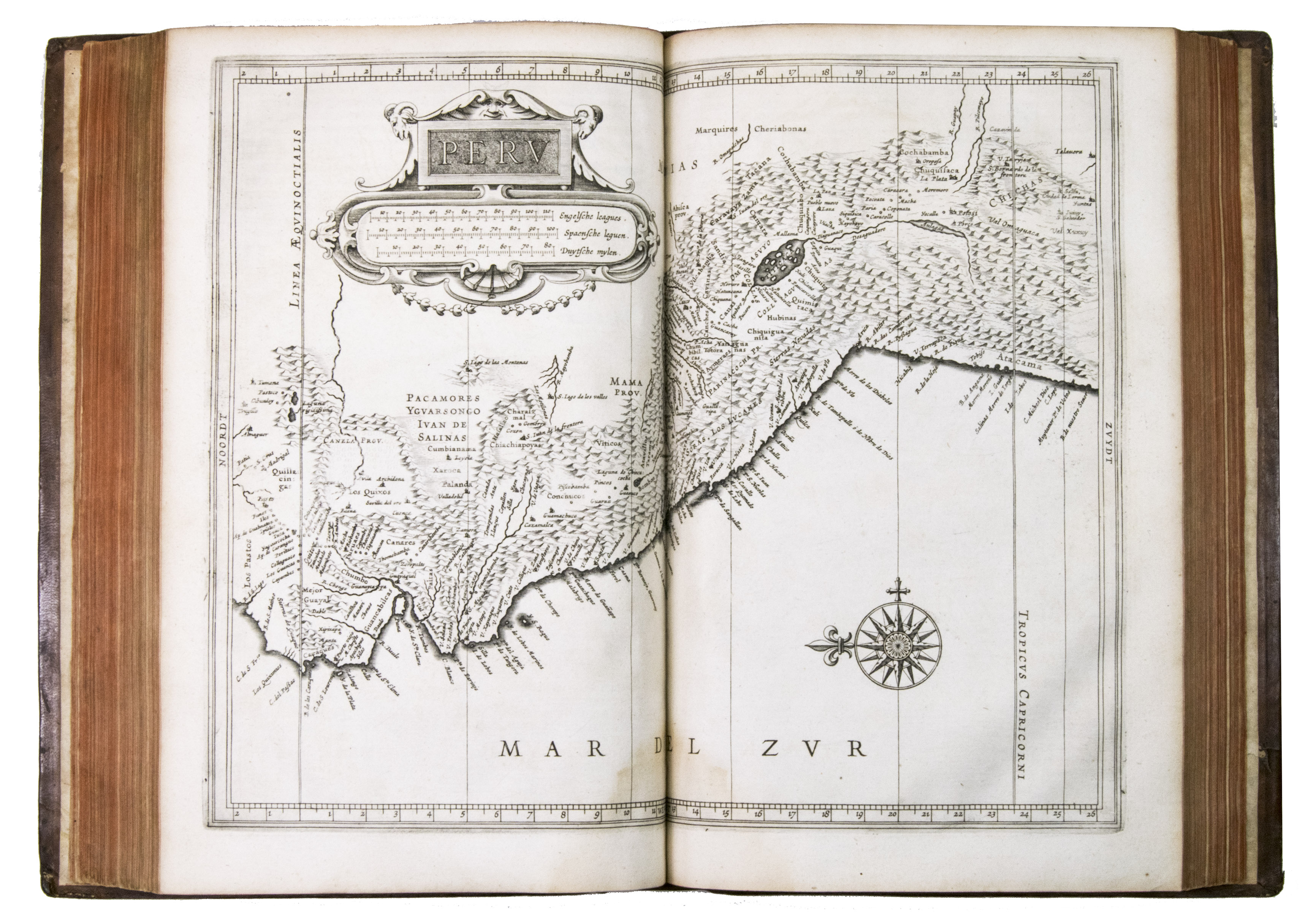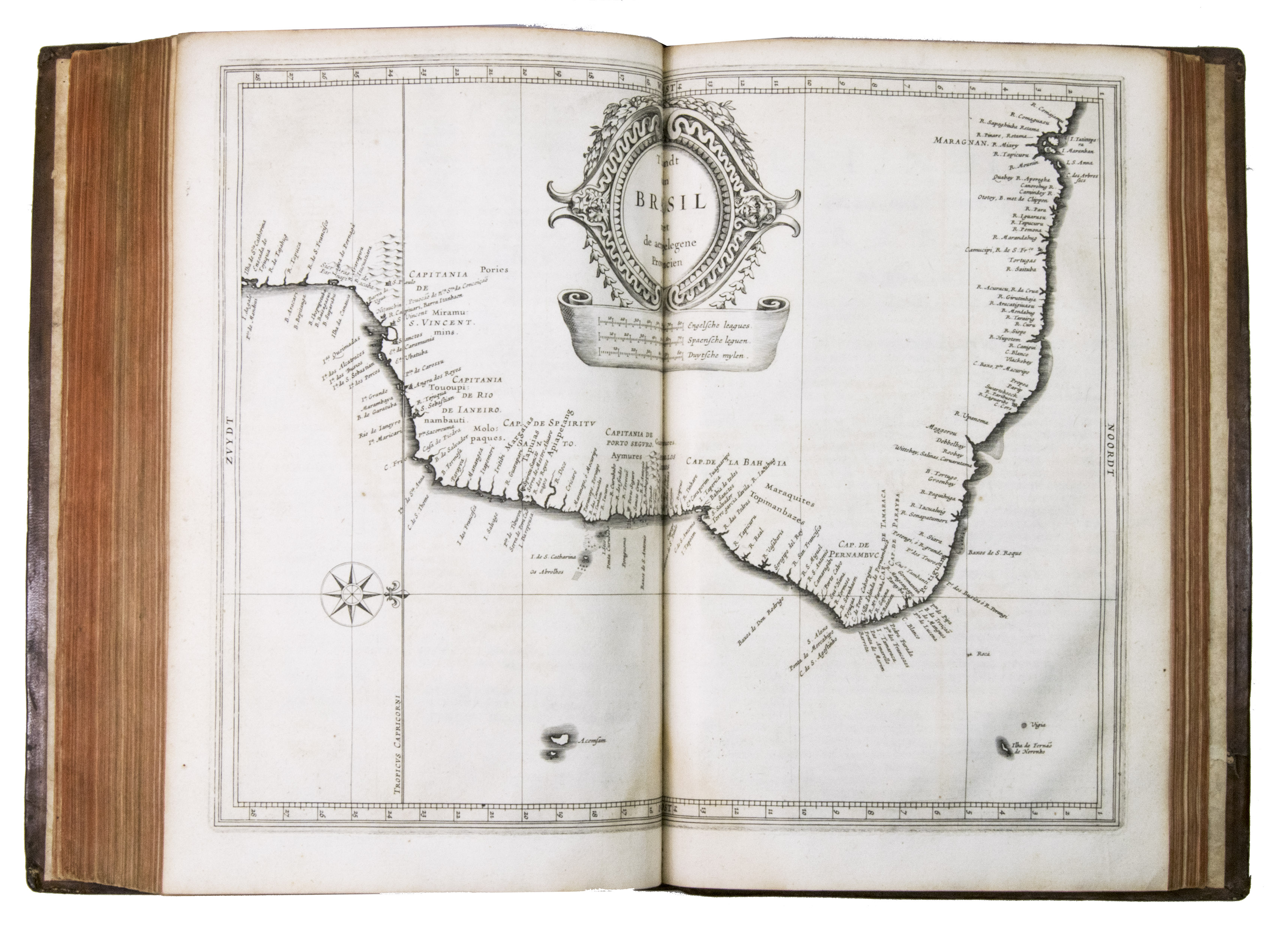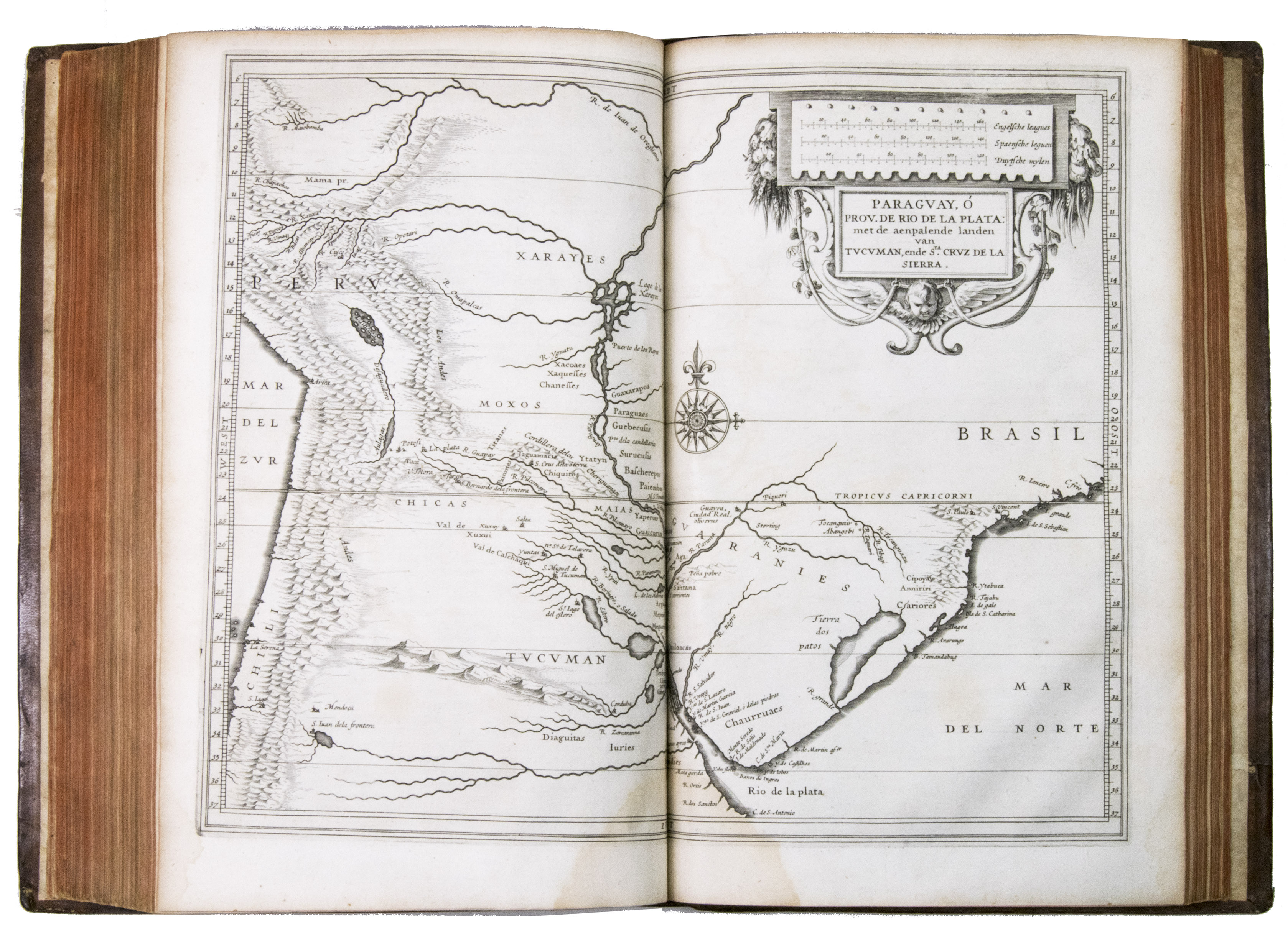 First edition of a 17th-century standard work on North and South America, including the West Indies, with 10 maps covering the whole of Mexico, the West Indies, and Central & South America. De Laets book remains an important source for the New World in the 16th and early 17th centuries, and covers its discovery, geography, topography, natural history, ethnology, and linguistics in 15 books. One book covers the West Indies, 3 the modern United States & Canada, 3 Mexico and Central America, and 8 South America. Included are 2 chapters devoted primarily to Brazil, 1 to Venezuela, and 1 to Guatamala.
