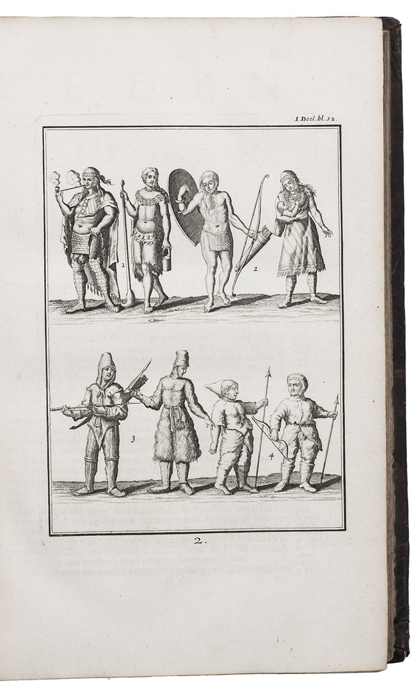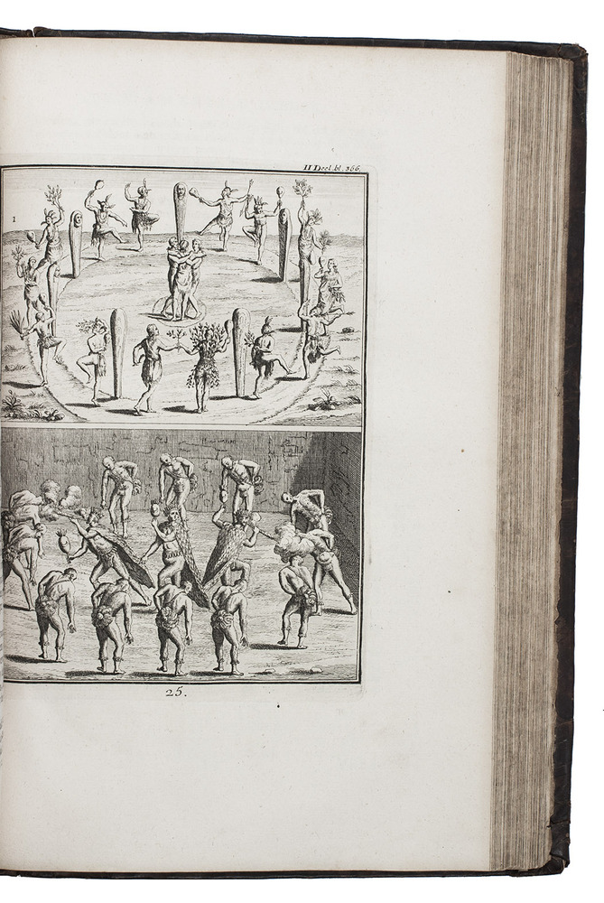 First edition of the Dutch translation of an important work on North American Indians. The author, Joseph François Lafitau (1681-1746), was the son of a rich merchant and travelled as a missionary to Canada in 1711, where he tried to convert the Iroquois Indians to Christianity. He made "a thorough study of Iroquois character and usages, as a preparation for his great work Moers des sauvages ..." (Howgego). It deals extensively with the religion of the Iroquois, referring to other "primal" religions in Brazil and the Antilles, but also to ancient Greek and Roman rites. Other chapters deal with the Iroquois government, marriage, warfare, trade, hunting, burial, etc., all illustrated in great detail. Lafiteau also discovered ginseng in Canada, and wrote a treatise on its medicinal properties.