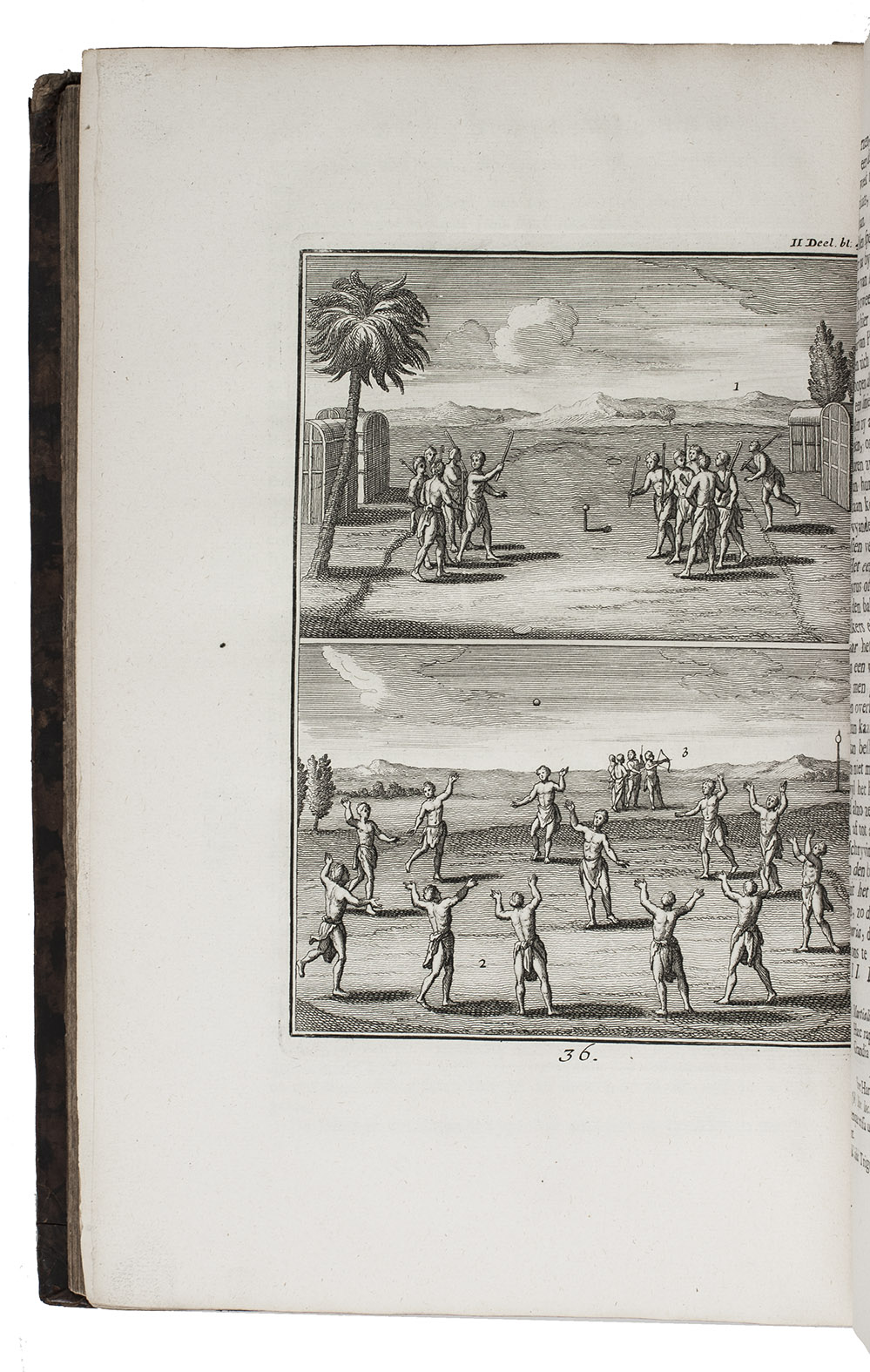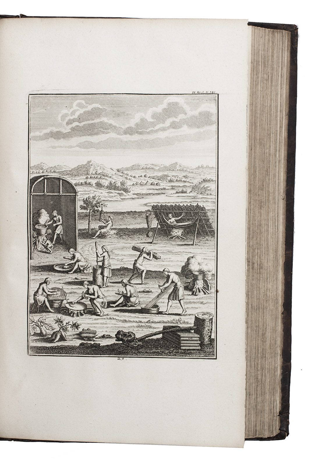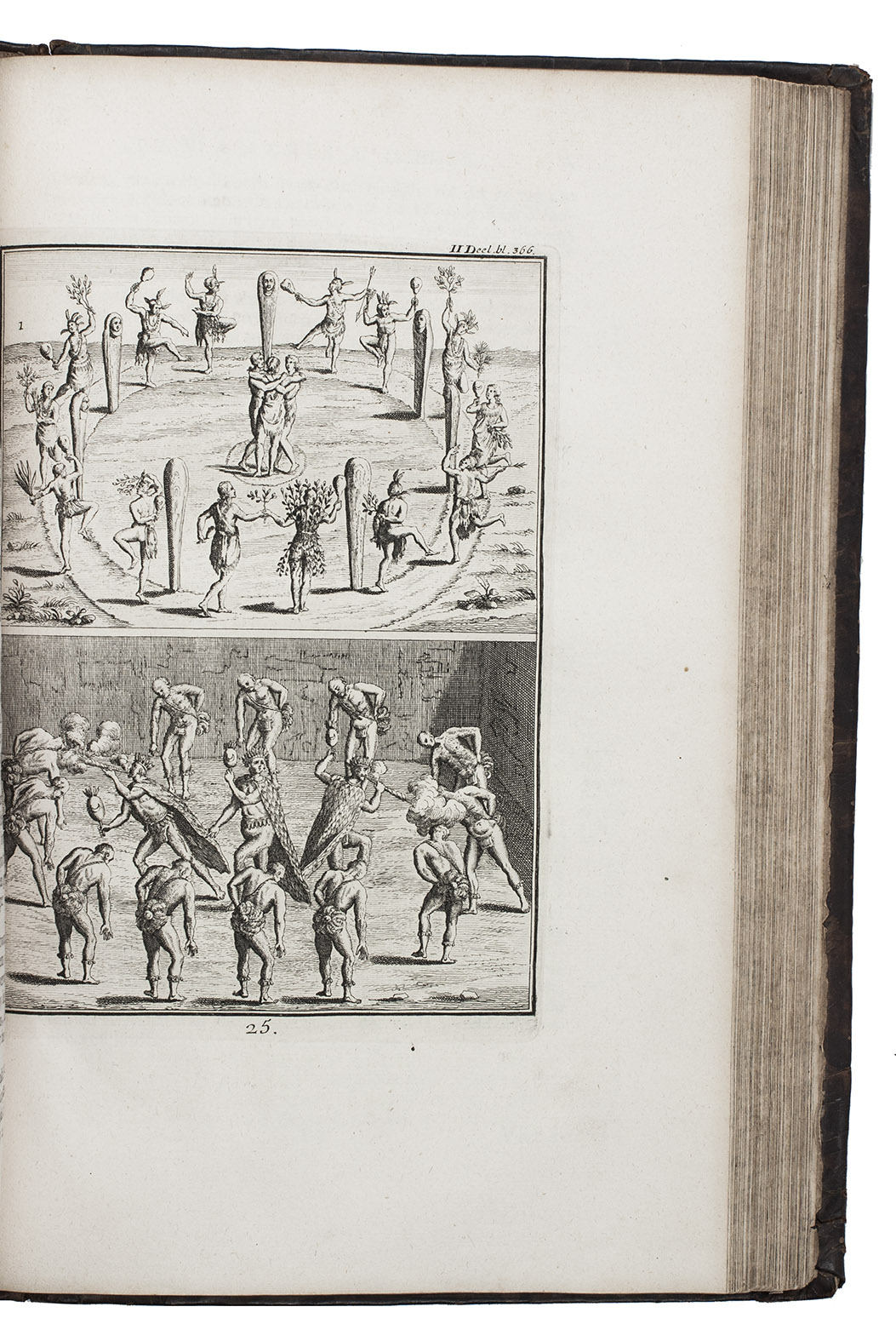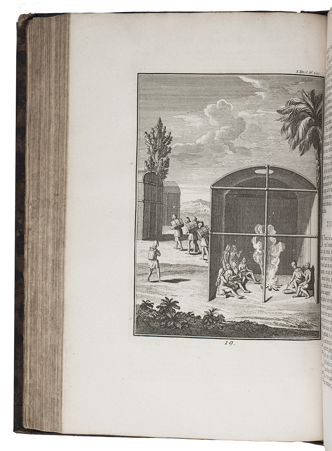 The Hague, Gerard vander Poel, 1731. 2 volumes bound as 1. Folio. With engraved frontispiece, engraved map of North and South America and 41 engraved plates. Contemporary calf, richly gold-tooled spine. [6], 36, [18], 300; [4], 301-555 [= 560] pp.
